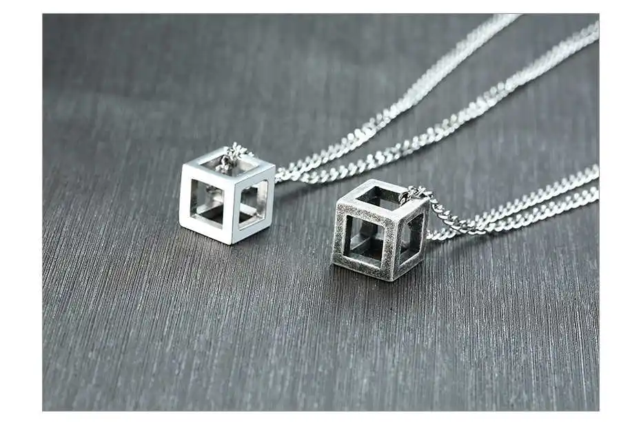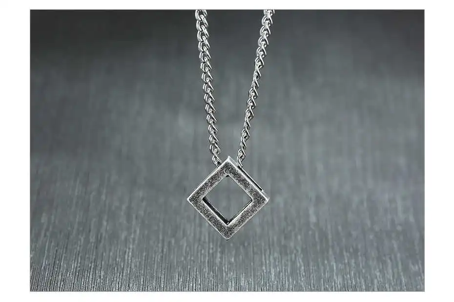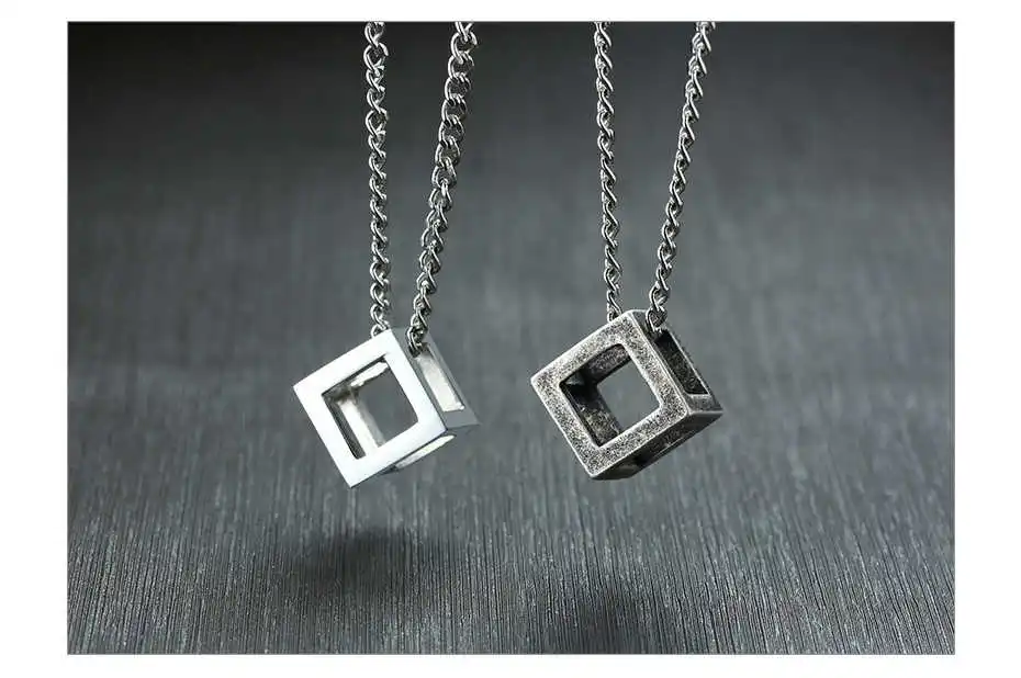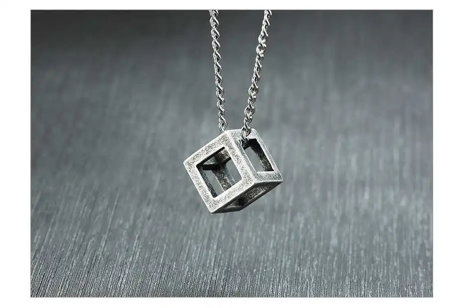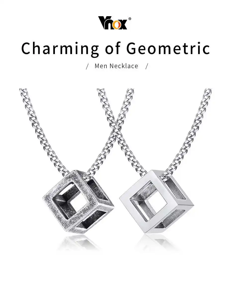 Vnox Ретро пустой кубик кулон для мужчин из нержавеющей стали квадратное винтажное ожерелье панковские геометрические колье 24 "цепь