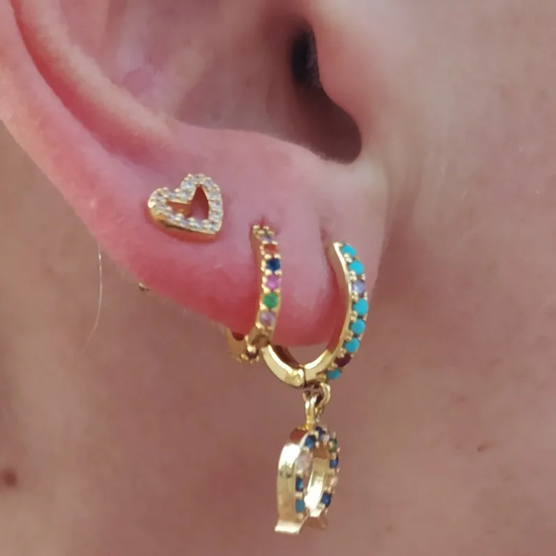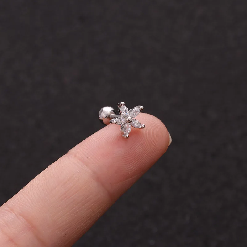 Серьги-гвоздики женские для пирсинга, ювелирные украшения для прокола хряща Луны, звезды, золото и серебро, кубический цирконий, маленькие серьги-гвоздики, 1 шт.