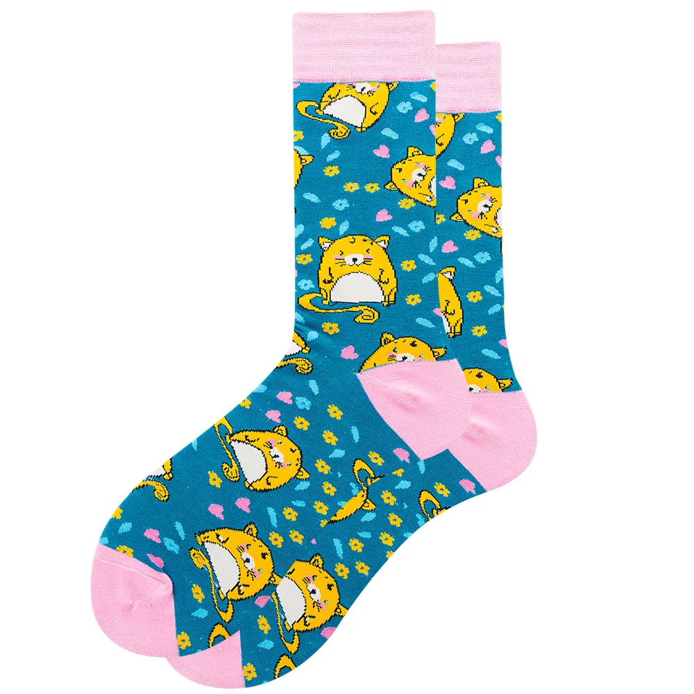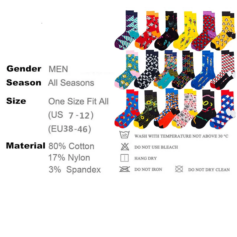 1 пара хлопковые носки для мужчин осень-зима женские короткие носки в стиле кэжуал, Мужские Печатные Красочные забавные Happy классные носки мужские