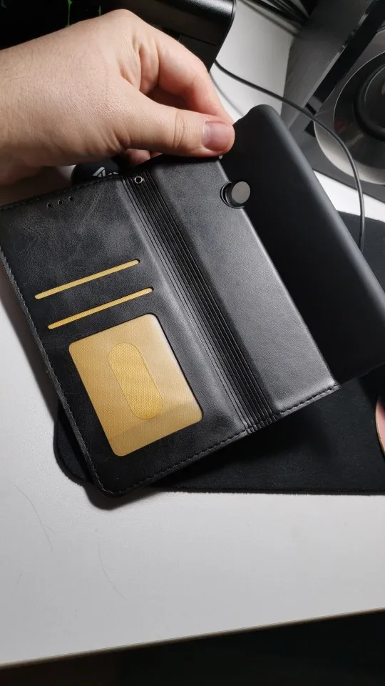 Долгая доставка до Новосибирска, полтора месяца. Чехол хороший и выглядит качественным. Нравится, что куда телефон вставляется мягкое, значит быстро не сломается. Закрывашка магнитная и довольно крепко закрывается. Жир с пальцев не остаётся
