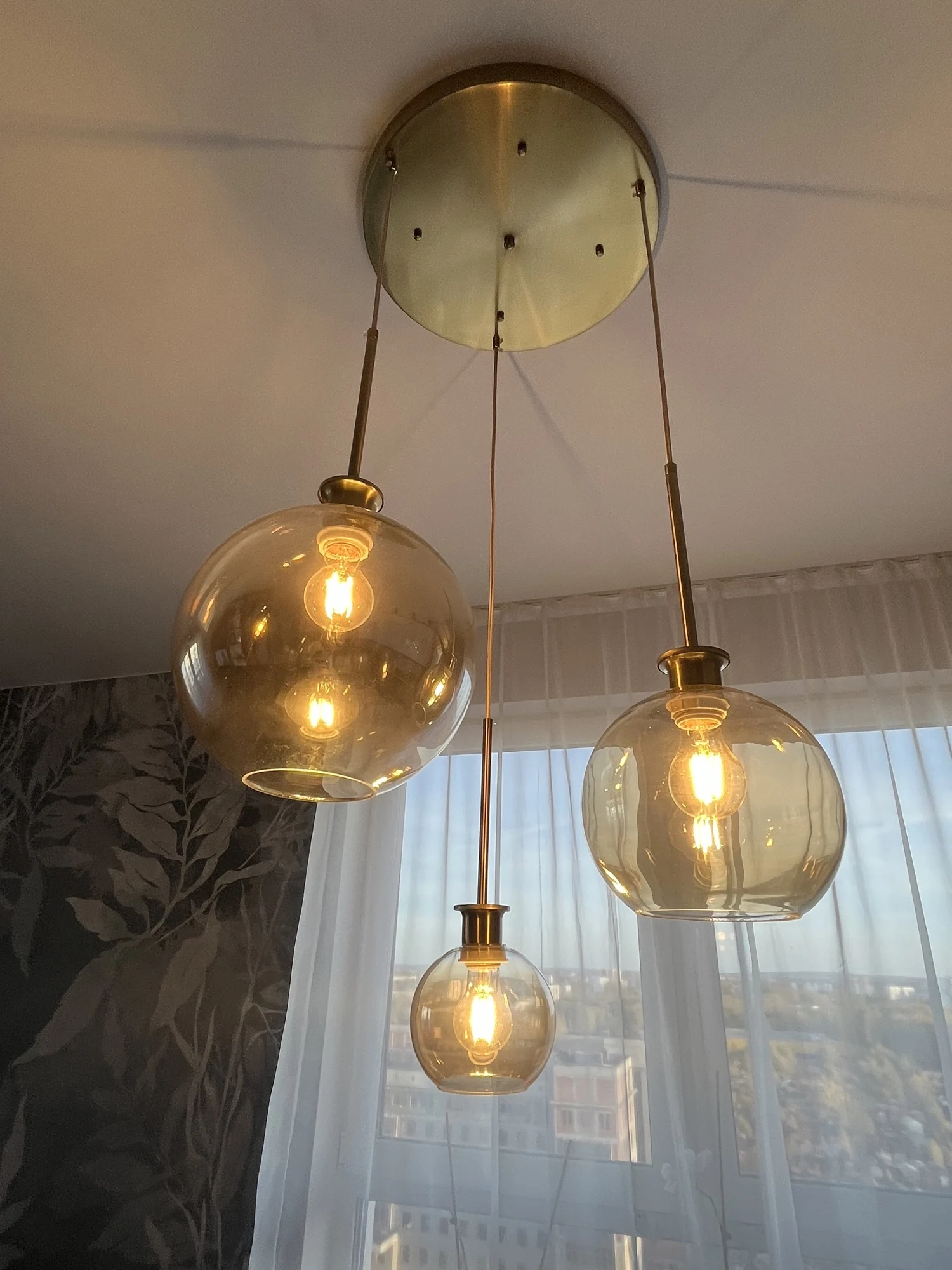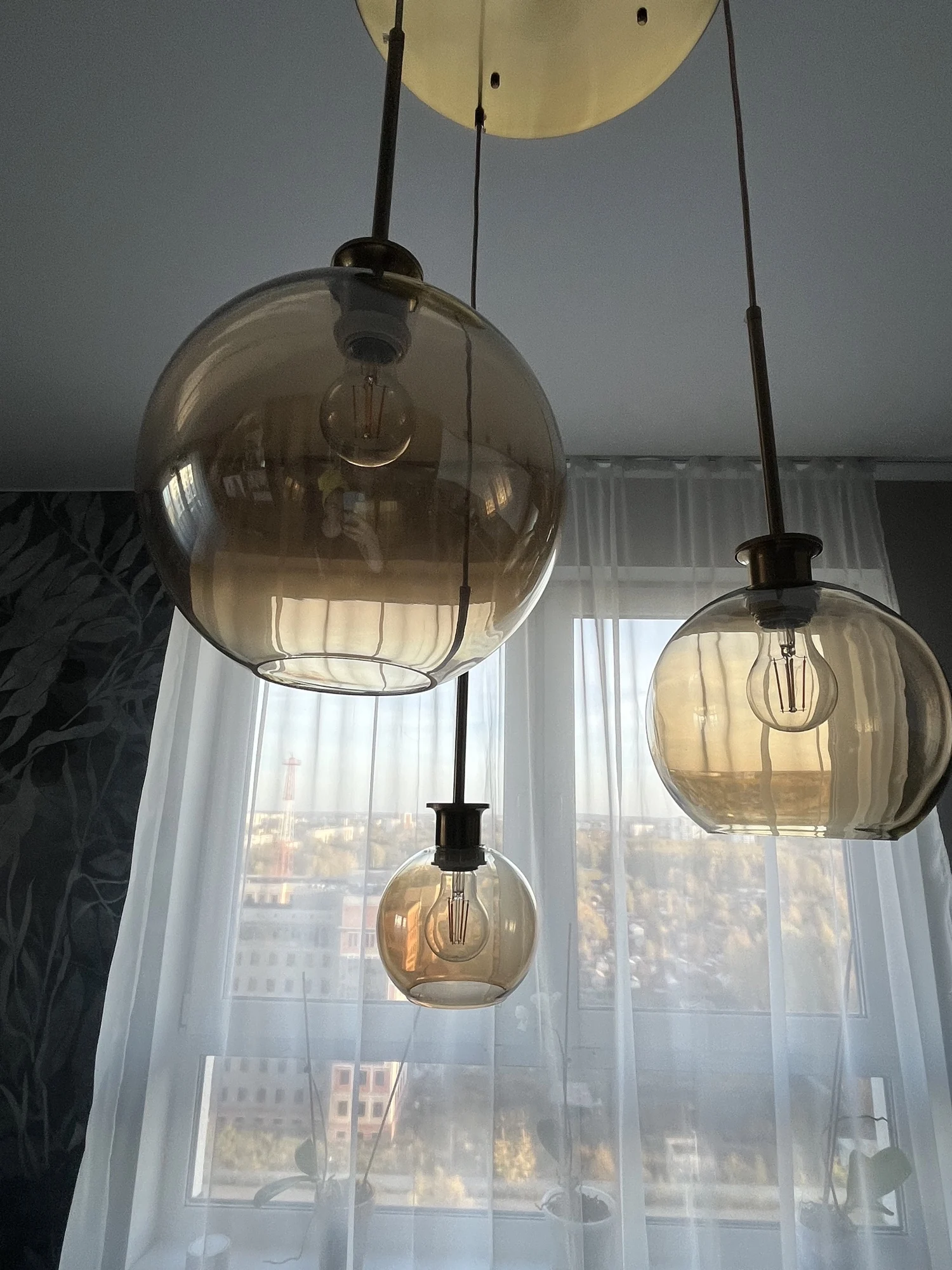 Набор из 3 подвесных светильников LukLoy стеклянные шаровые подвесн...