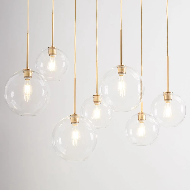 Подвесная лампа в виде золотого стеклянного шара, освещение для кух...