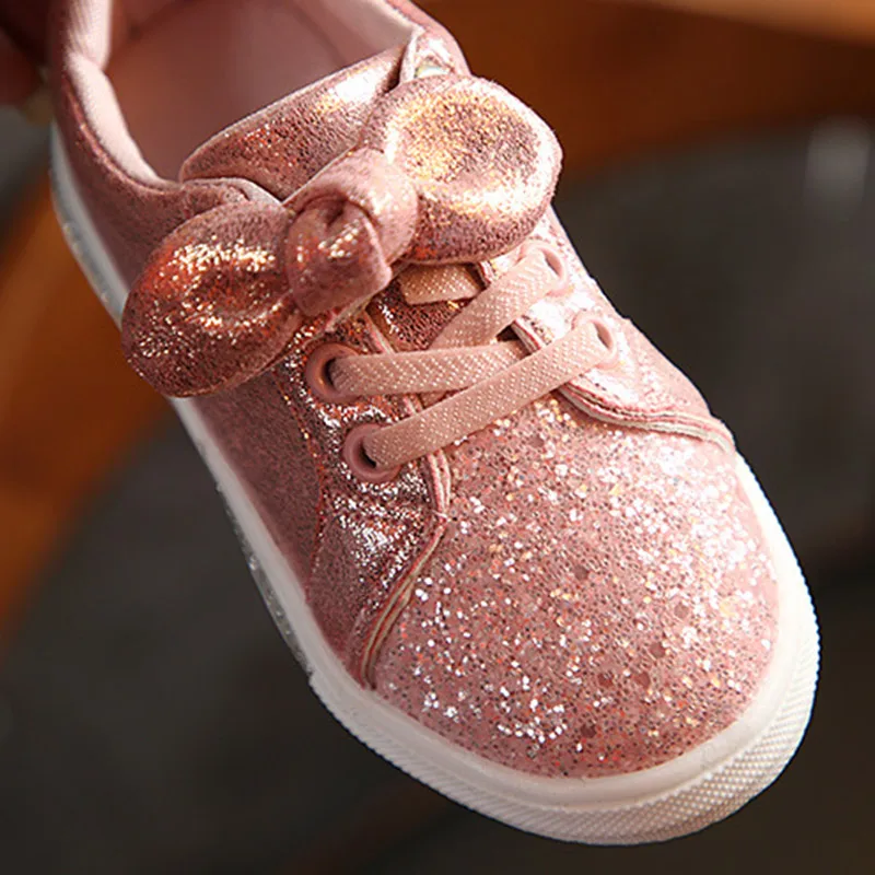 Детская обувь для девочек, детская повседневная обувь, кроссовки для маленьких девочек с бантом, блестящая кожаная обувь для маленьких принцесс, розовая весенняя обувь