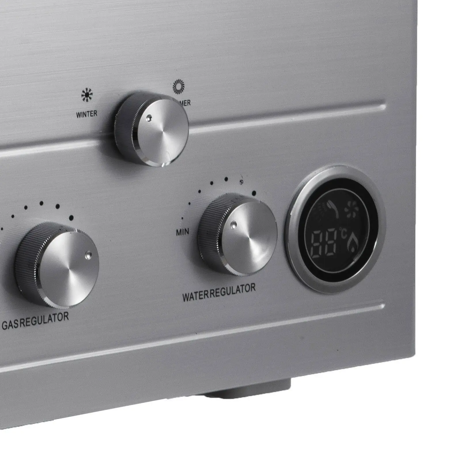 Пропановый газовый нагреватель горячей воды 16л по требованию без резервуара мгновенный бойлер 4.3GPMОписание товараСписок составляет около 16 л LPG нагреватель горячей воды 16L-LPG.Наш подогреватель горячей воды LPG оснащен мгновенным, не ожидая, и меньший размер ноги может сэкономить много места. Вы получаете мгновенную, бесконечную горячую воду, где бы вы ни находились! Безопасность, газовый водонагреватель для достижения разделения тепла и тепла, ванный в ванной комнате, установлен на кухне, чтобы избежать риска утечки во время процесса купания. 16L-LPG идеально подходит для дома. Принимайте горячий душ или мойте собак. Это отлично подходит для вне сети или других районов, где электричество не доступно.Характеристика1. Стильный дизайнСовременный модный дизайн линии, великолепный тонкий вид.2. Высокая эффективность и энергосбережениеТеплообменник и основная горелка используют в основном передовые энергосберегающие и сгорающие технологии для снижения расхода газа и сжигания шума.3. Запуск под низким давлением водыКлапан управления водой делает нагреватель пускаться под низким давлением воды и стабильной воды, протекающей под высоким давлением, чтобы удовлетворить требования тех, кто в районах нехватки воды и тех, кто живет в высоких лестницах.4. Автоматическая защита коллектора, проверка пламени LonДля вашей безопасности автоматически отключите газовую энергию под неожиданным пламенем.5. Дизайн контроллера, защита от перегреваМожно правильно контролировать как холодную, так и теплую воду. Более 75 °C автоматически выключается.6. Защита от давления воды, функция защиты от замерзанияАвтоматическое снижение давления при чрезмерном высоком давлении воды. Устройство против замерзания может разрядить запас воды, чтобы избежать повреждения самой машины, замерзая под холодными зонами или в чехол долгое время не использовать.Внимание1. Настоятельно рекомендуется установить профессионалом.2. Пожалуйста, внимательно прочитайте инструкции перед использованием газового водонагревателя и в строгом соответствии с инструкциями по использованию, обслуживанию водонагревателей.3. Необходимо использовать в условиях вентиляции, обеспечивая нормальное состояние дымового комплекта.4. Газовый водонагреватель не должен быть установлен в вашей ванной комнате для вашей безопасности.5. Пожалуйста, регулярно проверяйте газовое соединение, чтобы убедиться, что нет риска утечки.Примечание:1. Что касается безопасности, пожалуйста, не устанавливайте этот мгновенный бойлер для нагрева воды в вашей ванной комнате.2. Каждый тип газового водонагревателя подходит только для одного вида газа. Этот водонагреватель Vevor 16L без резервуара мгновенный нагреватель горячей воды использует только сжиженный нефтяной газ (LPG).