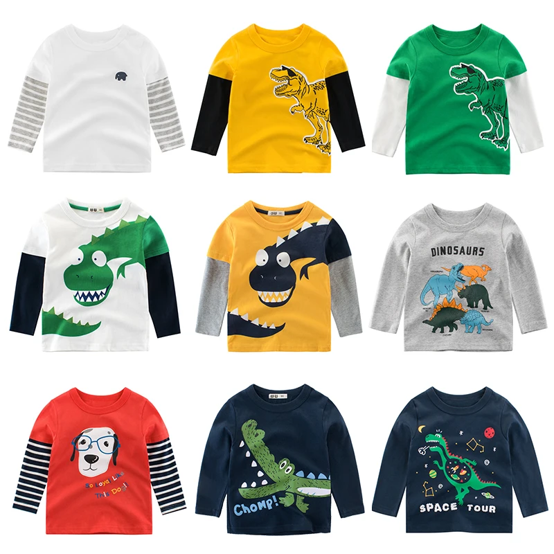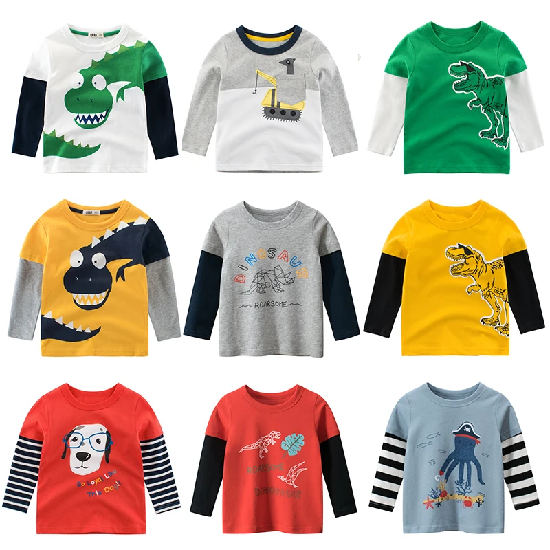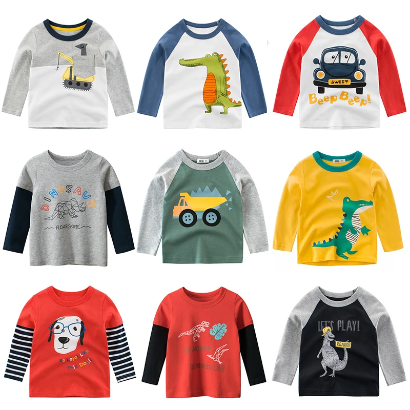 Футболка для мальчиков, с длинными рукавами, для маленьких девочек, детская, хлопковая, модная, осенне-весенняя, с принтом машины, От 2 до 8 лет