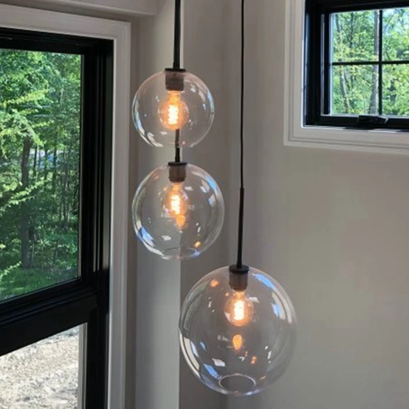 Набор из 3 подвесных светильников LukLoy стеклянные шаровые подвесные светильники, для лофта, обеденного стола, кухни, стола, современное освещение Подвеска лампы