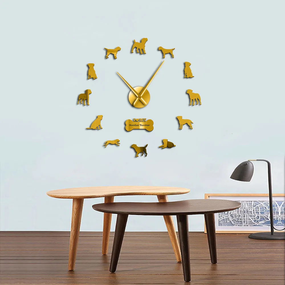 3D рамка терьер собака порода стены DIY зеркальные наклейки бескаркасные бесшумные гигантские настенные часы границы домашний декор подарки