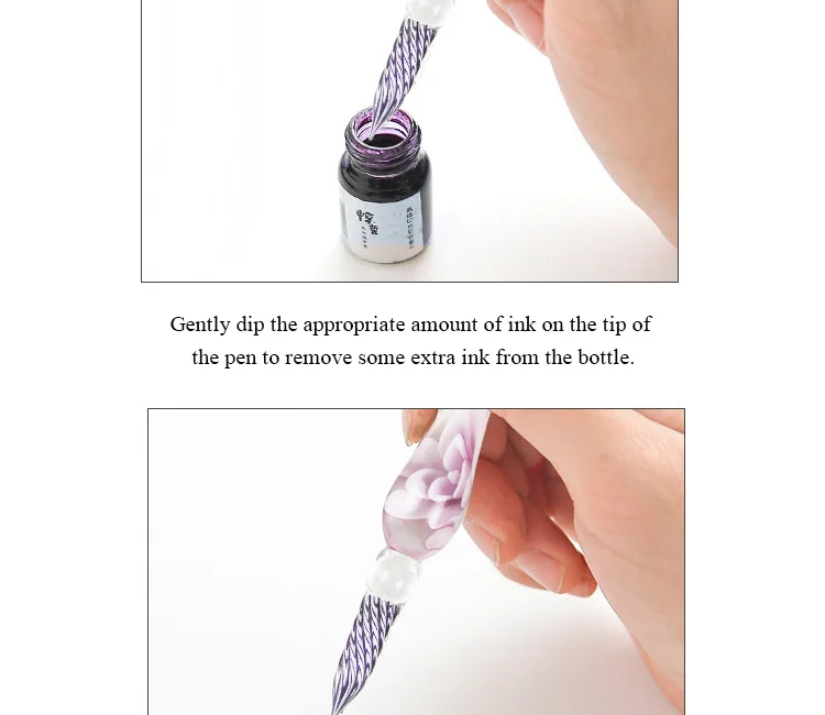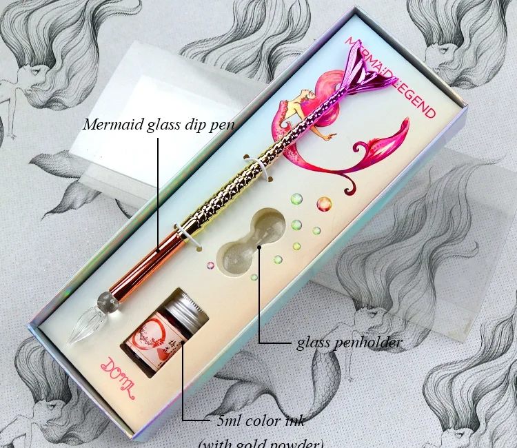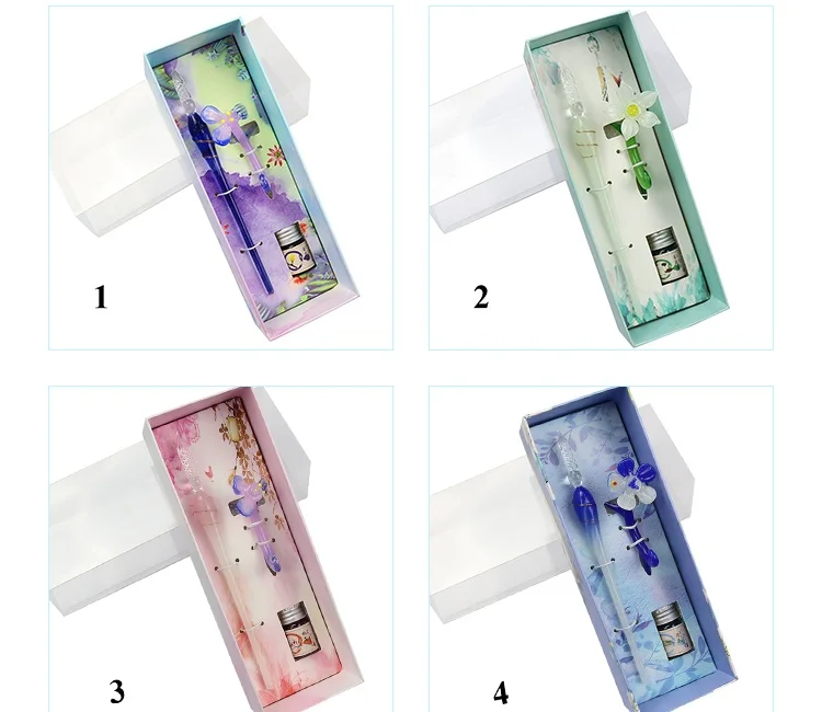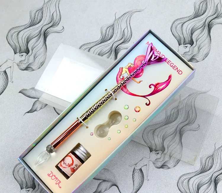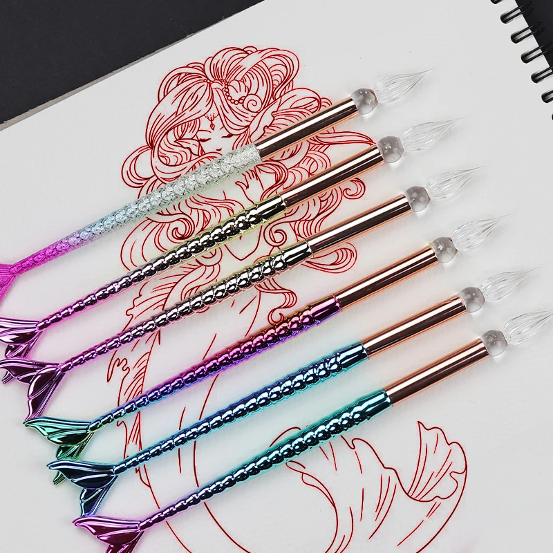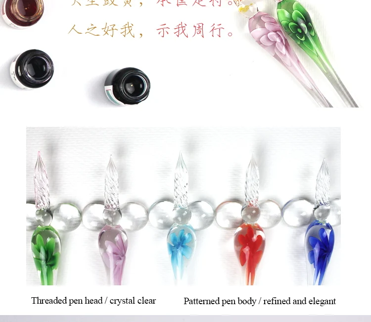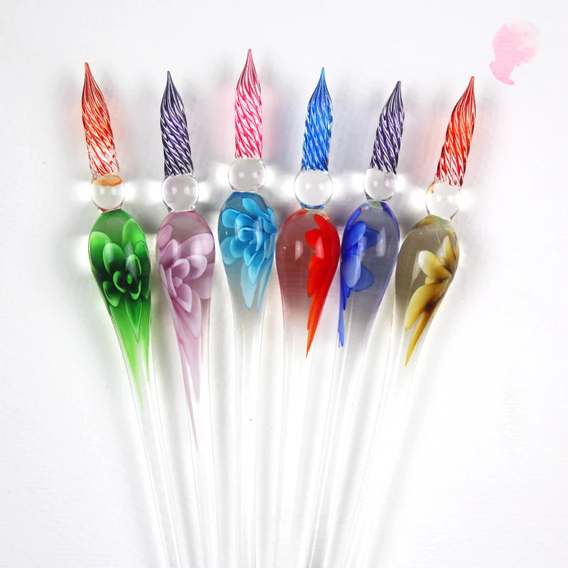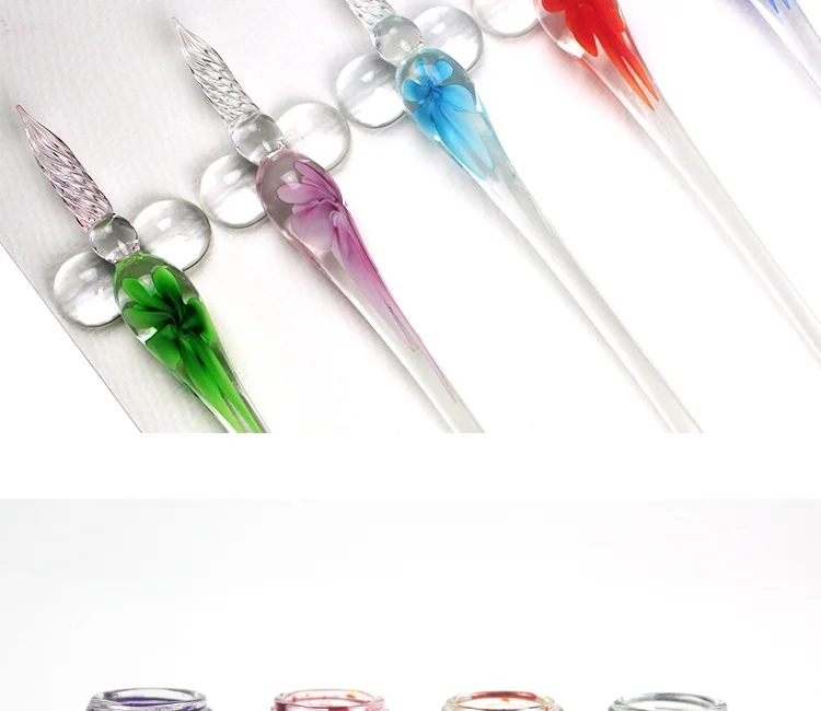 Креативные многофункциональные стеклянные ручки ручной работы Русалкацветочный узор прозрачное Хрустальное стекло Подпись чернила Подарочная авторучка