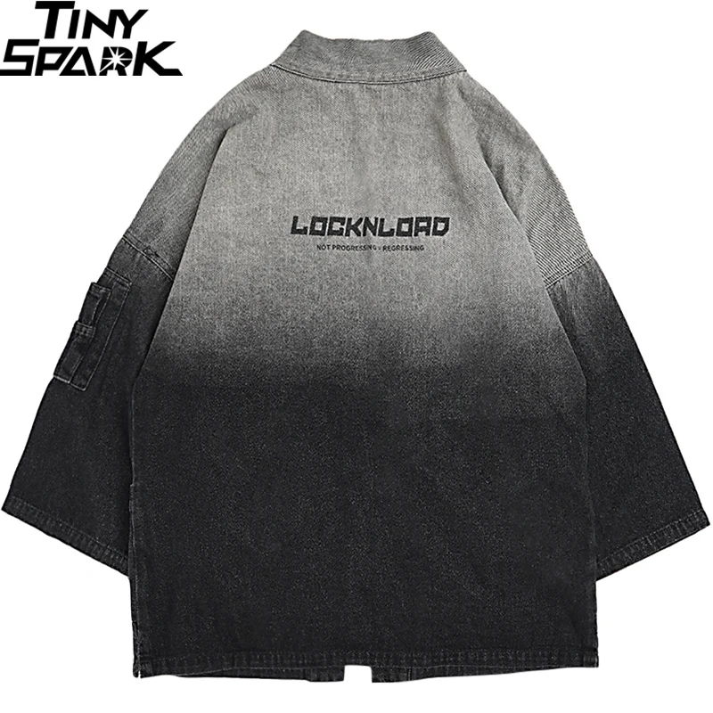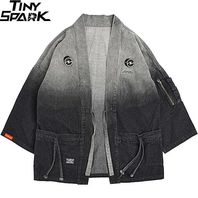 2021 японские кимоно куртка градиент цвета хип-хоп Мужская джинсовая куртка уличная Harajuku японский стиль кардиган куртка джинсовая винтажная