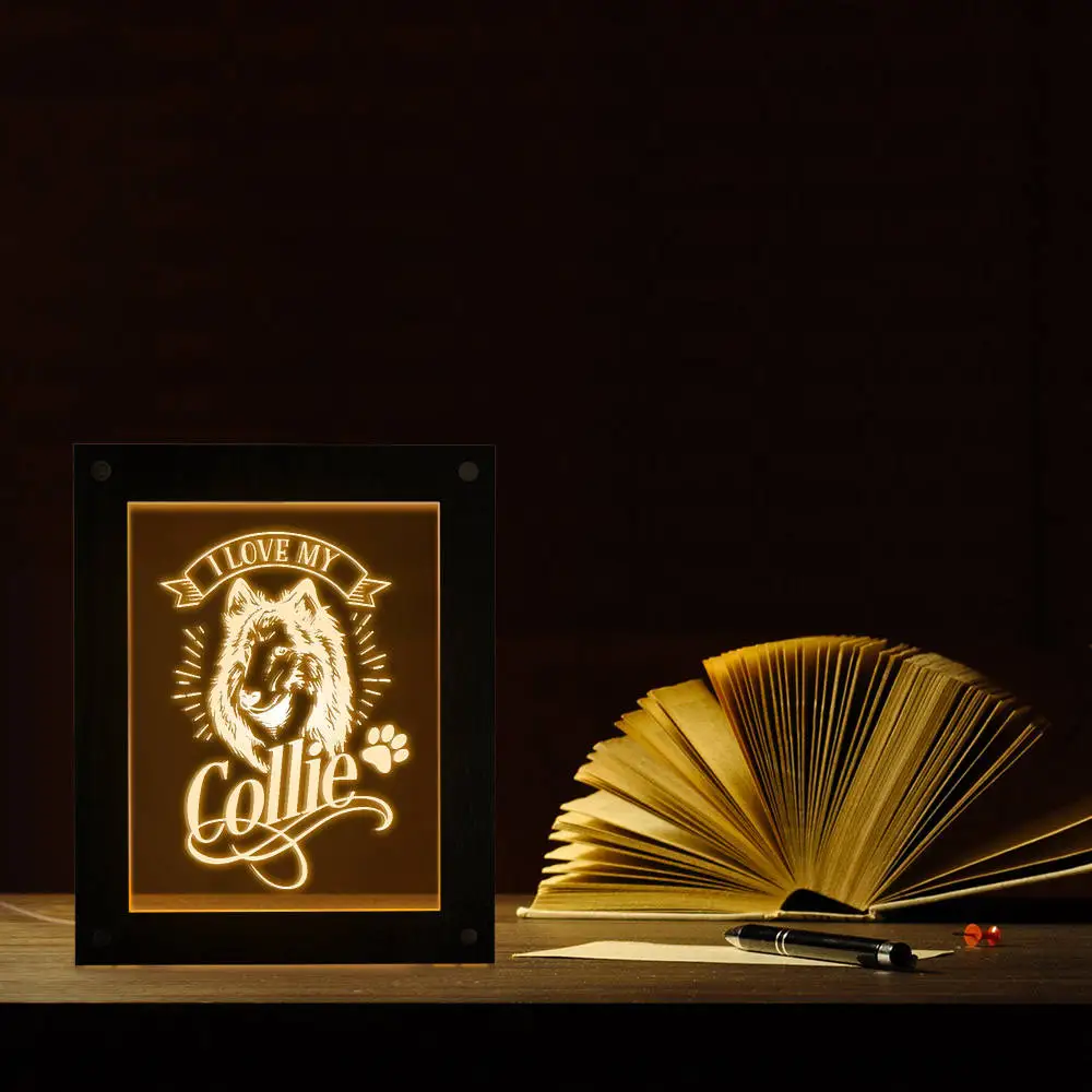 Деревянная светодиодная подсветильник ка для детской комнаты I Love my Collie, шотландская овчарка