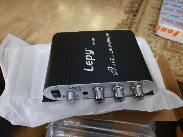 Заказал 28.09, получил на почте 20.10. Всё пришло в целости, упаковано в очень толстую "пупырку", всё работает. К продавцу вопросов нет, всё нормально. - Смотрел ТВ и фильмы через домашний кинотеатр Samsung на 600 Вт, родной проигрыватель/усилитель сломался, а колонки выкидывать было жалко. Решил попробовать подключить через этот усилитель. Звук, конечно, на свои деньги и не больше. Бас очень плоский, объем слабый, при повышении громкости больше 50% идет фоновый гул. Итог: за 1400 рублей никаких претензий, но если вы хотите более-менее качественный плотный звук, то разочаруетесь.