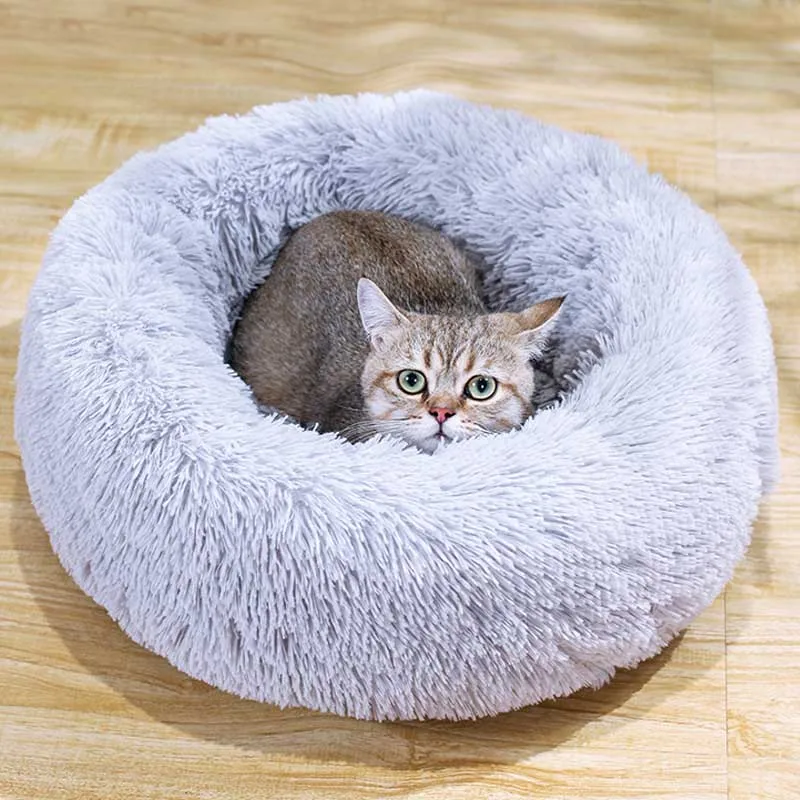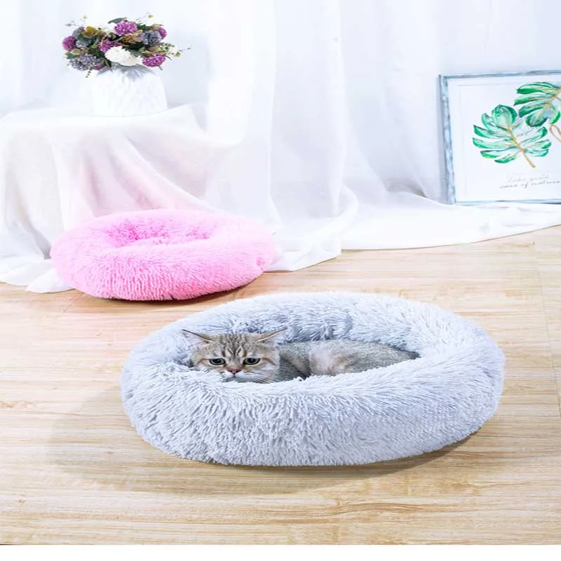 Теплый плюшевый домик для собак, Круглый длинный домик для питомцев, для маленьких средних и больших собак, моющийся, для улицы, для щенков
