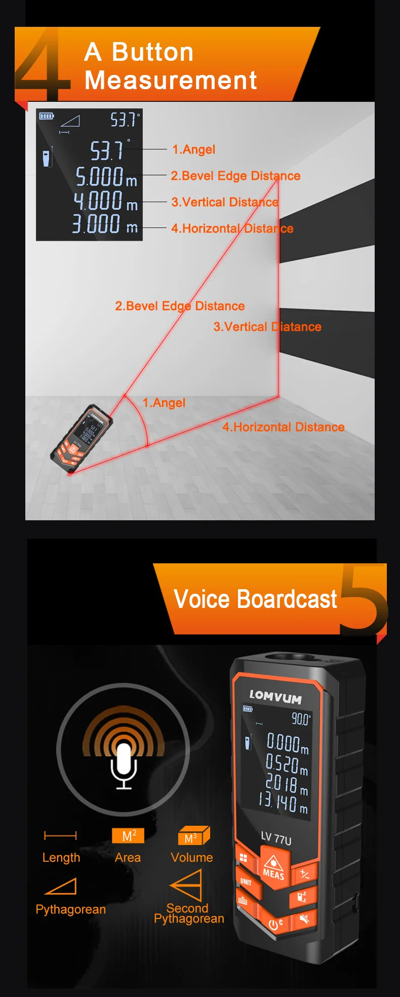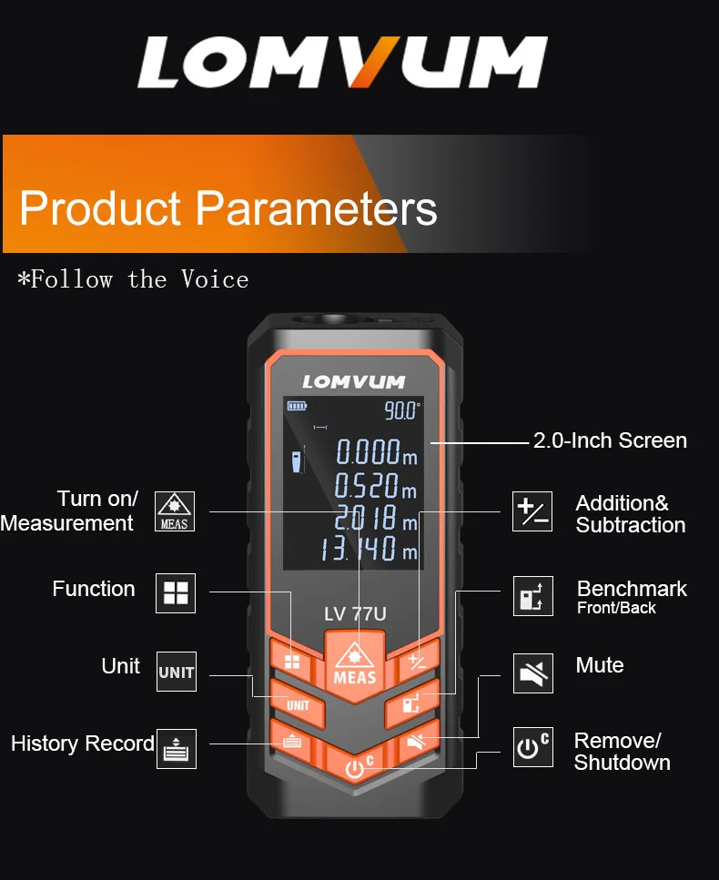 Дальномер LOMVUM лазерный цифровой, 406080100120 м