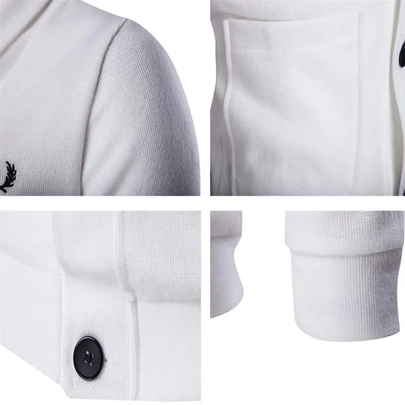 2019 осенний белый кардиган с отложным воротником и вышивкой пшеницы, повседневный однобортный Тонкий Однотонный свитер, мужской свитер XXL