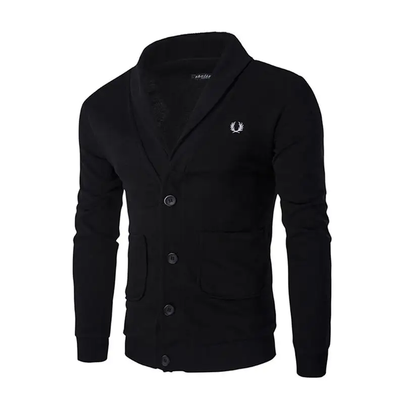 Мужской кардиган с вышивкой в виде пшеницы, зимний однотонный теплы...