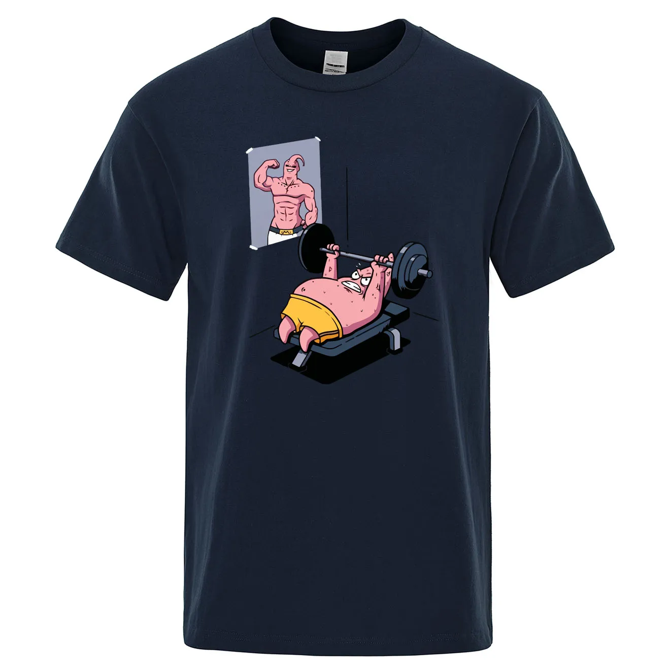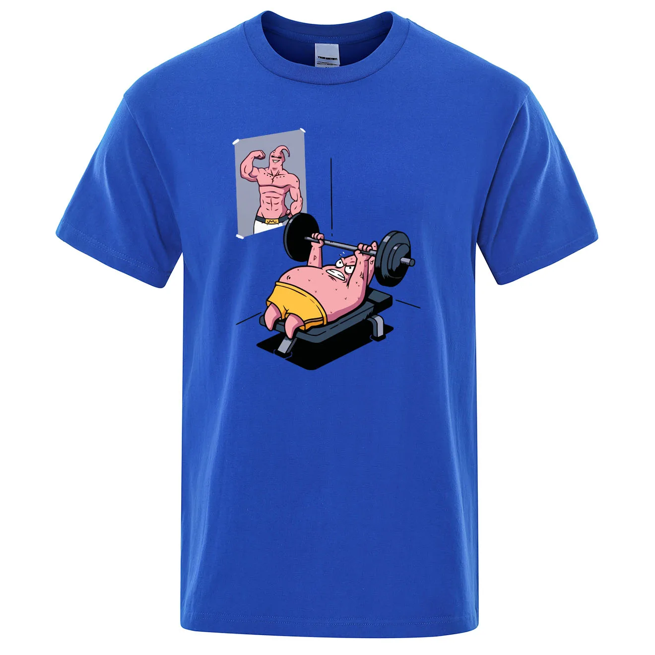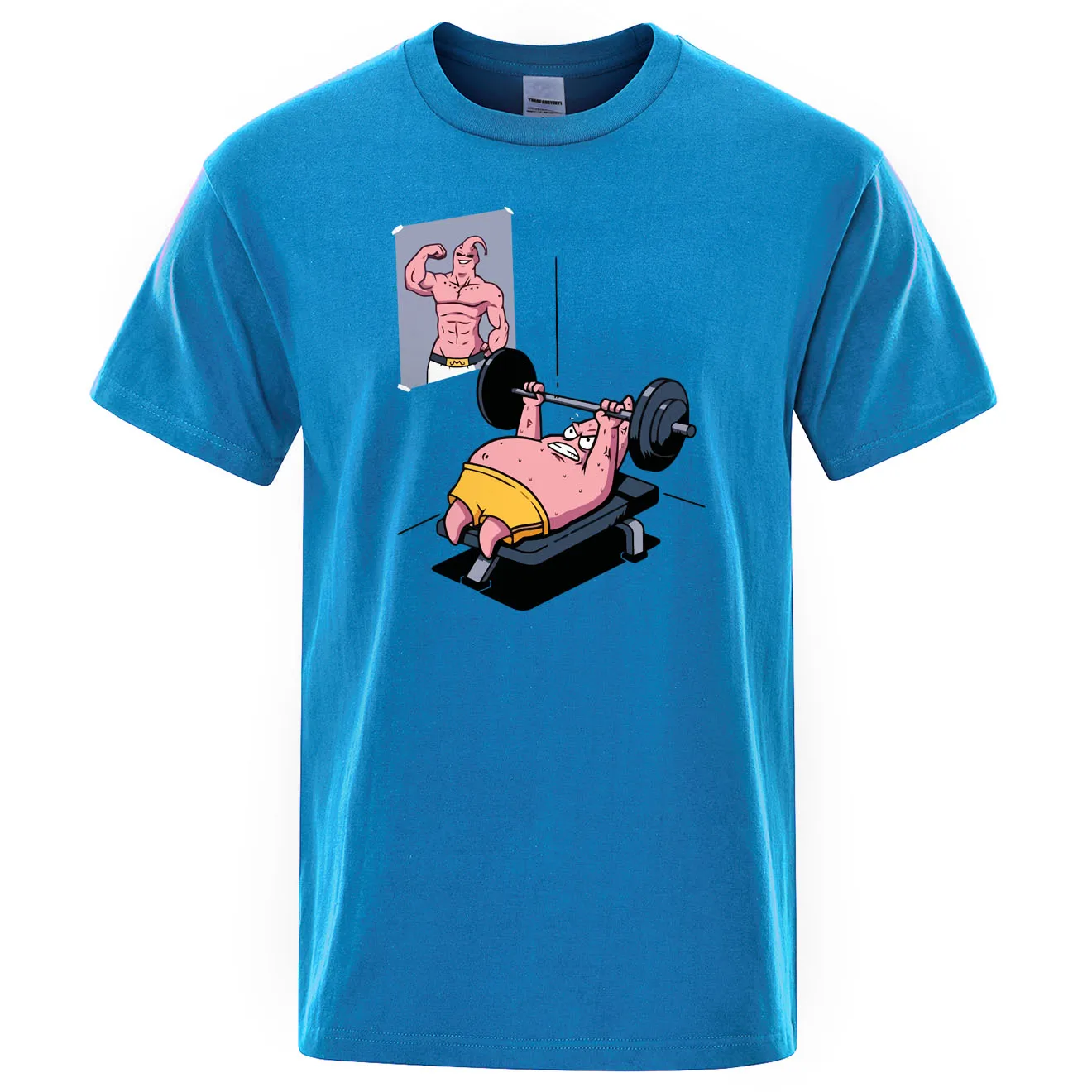 Мужские футболки с принтом гантелей, удобная футболка с круглым выр...