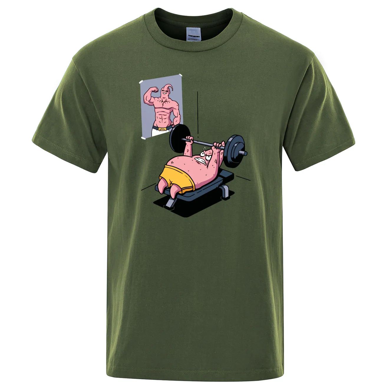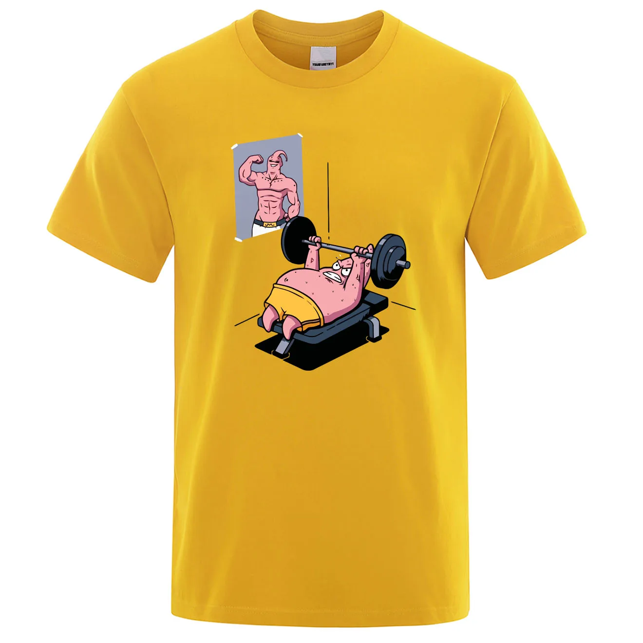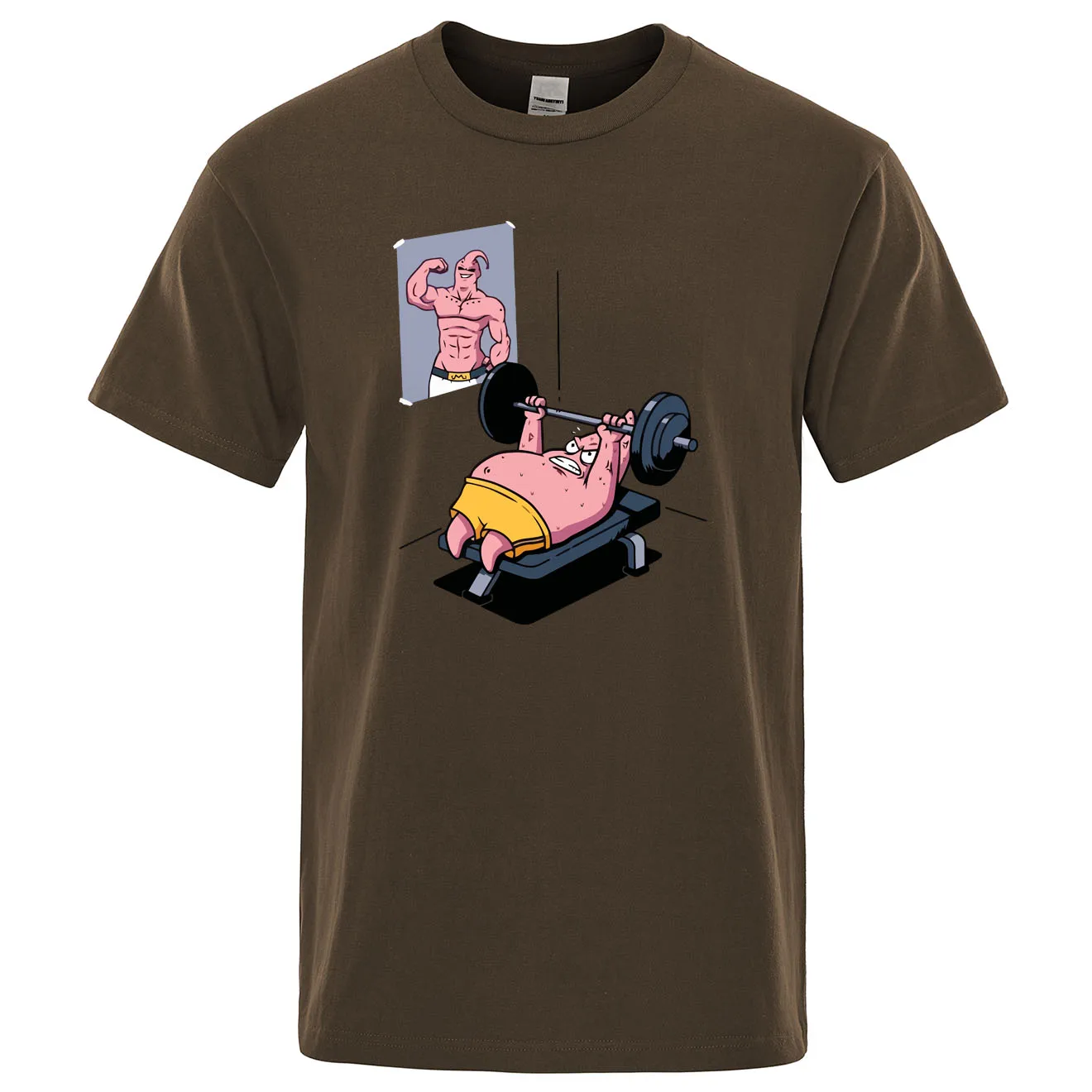 Мужские футболки с принтом гантелей, удобная футболка с круглым выр...