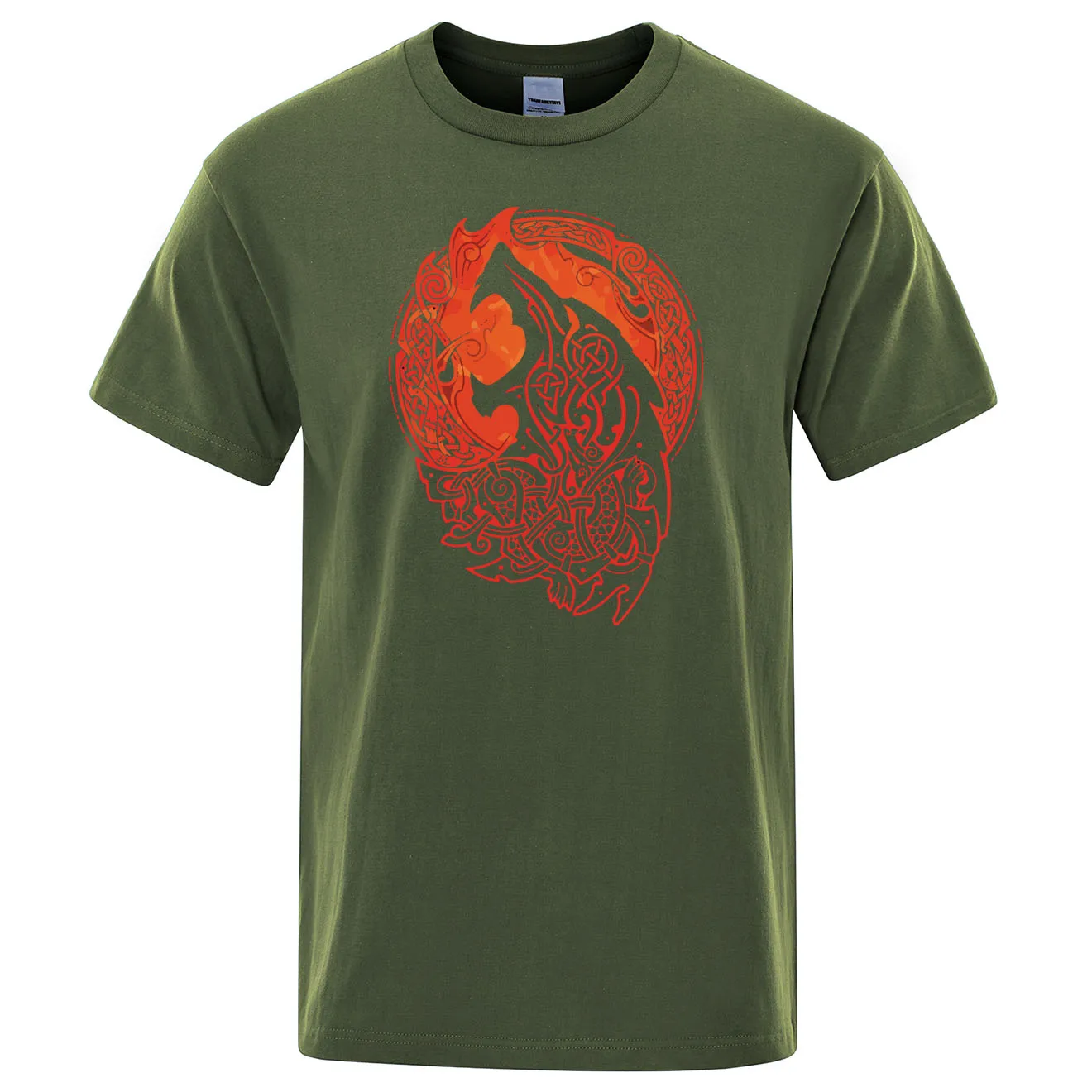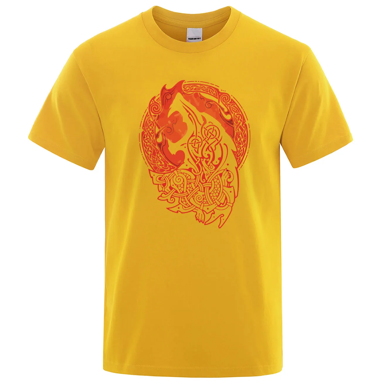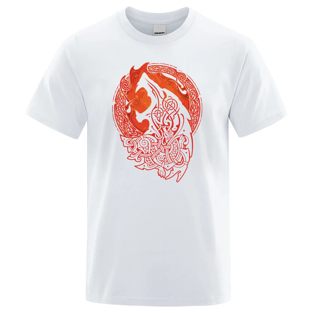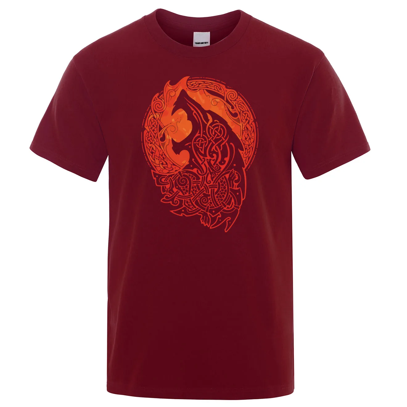 Футболка мужская оверсайз с рисунком скандинавской мифологии, волк-Викинги, Фенрир, качественная брендовая хипстерская рубашка, Свободный Топ для отдыха, футболка с викингом