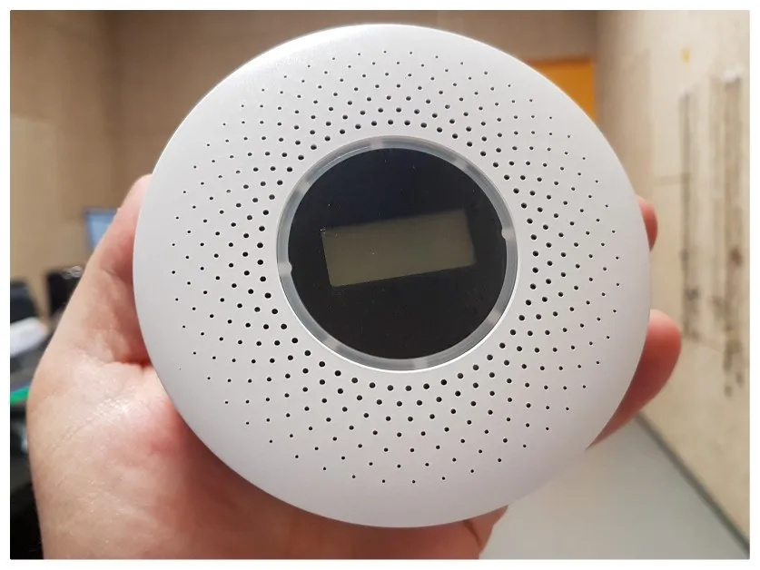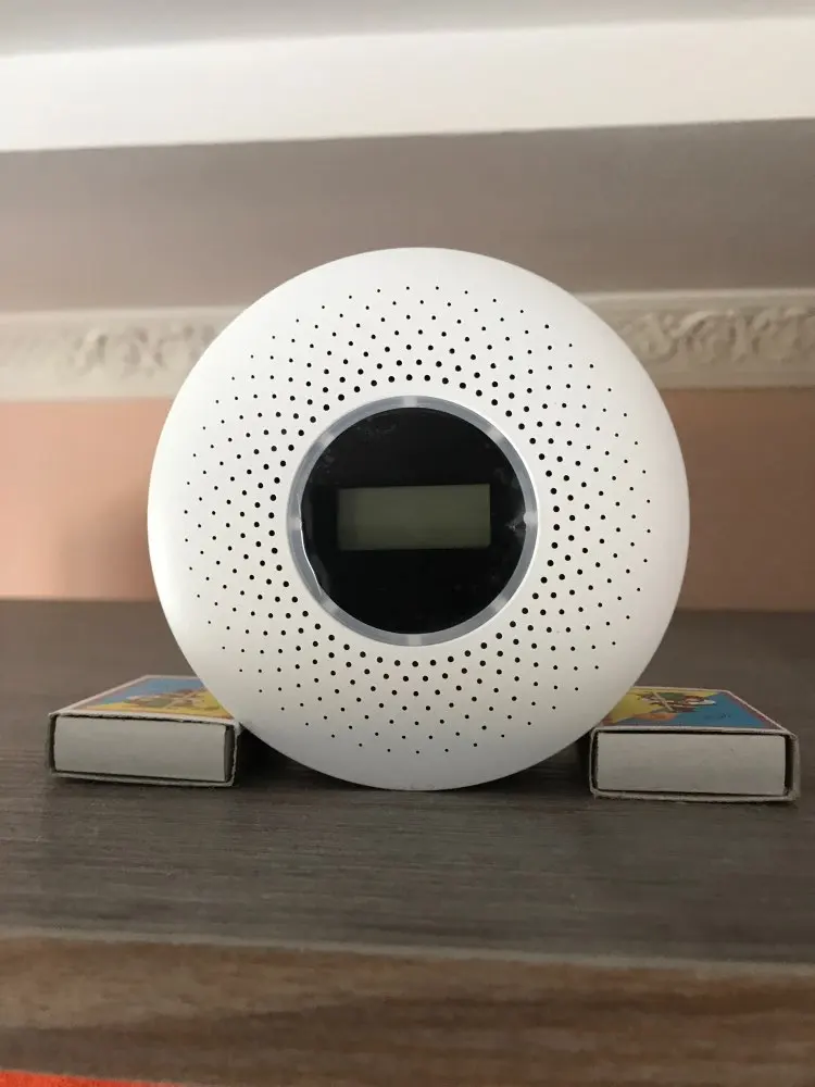 Работает, на дым реагирует быстро, капнул жир на плиту, через 3 секунды сработал. Порог срабатывания на CO2 300ppm, что много и не настраивается. Пищит громко, симпатично выглядит.
