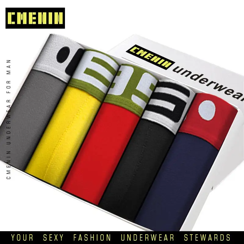 Трусы-боксеры мужские 5 шт.лот, нижнее белье из хлопка, мягкие шорты, однотонные, BS101
