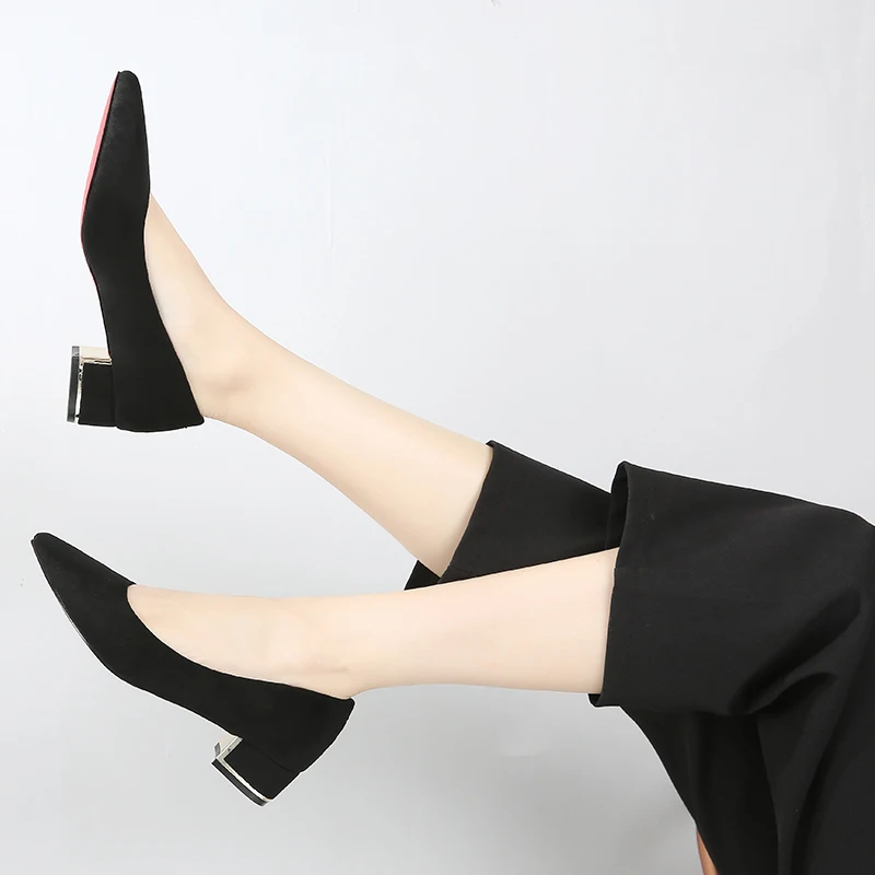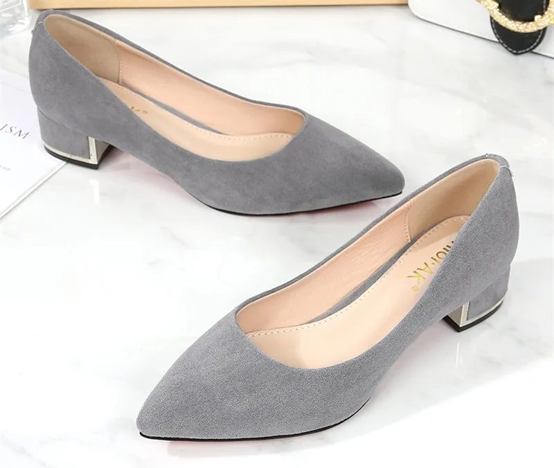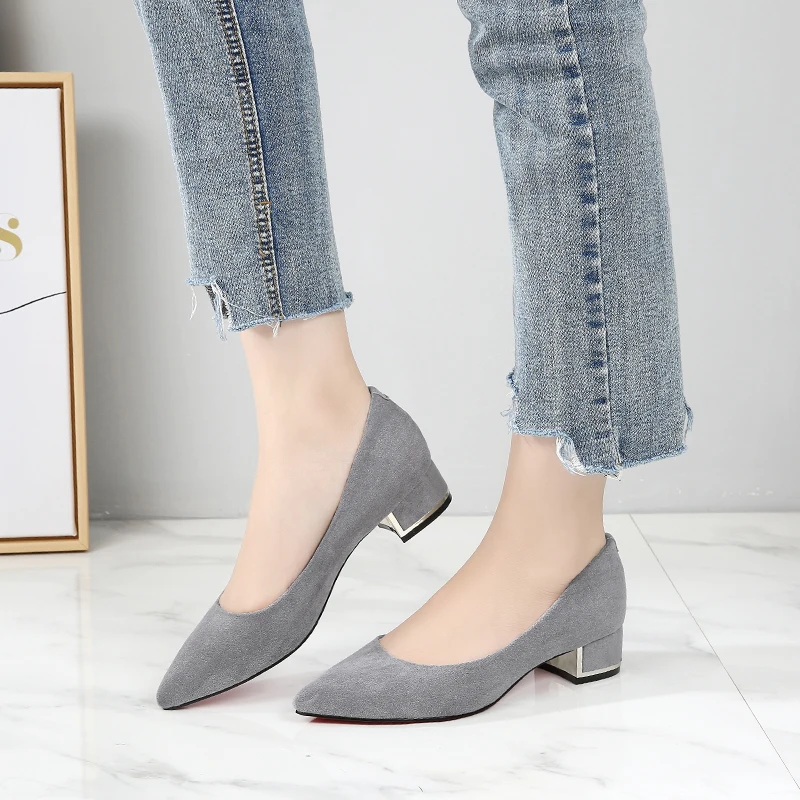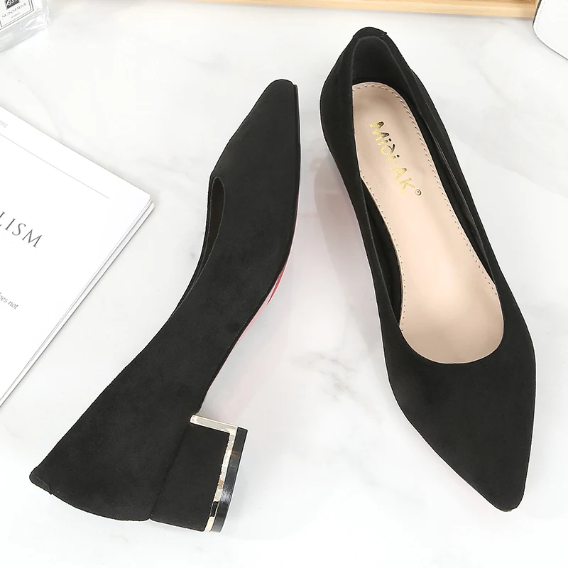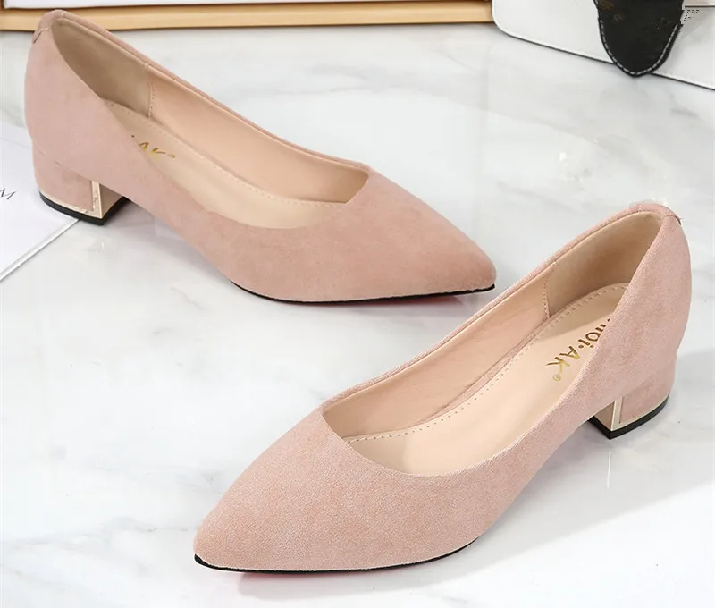 Туфли-лодочки женские с острым носком, простые, из флока, на среднем квадратном каблуке, повседневные, для работы и офиса, E0001