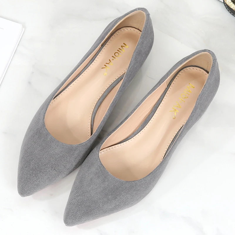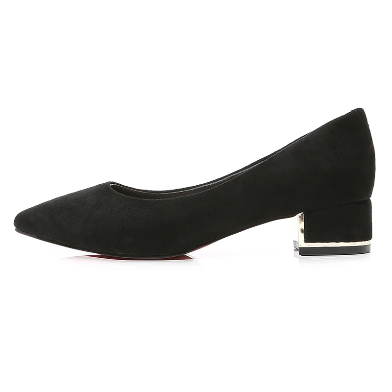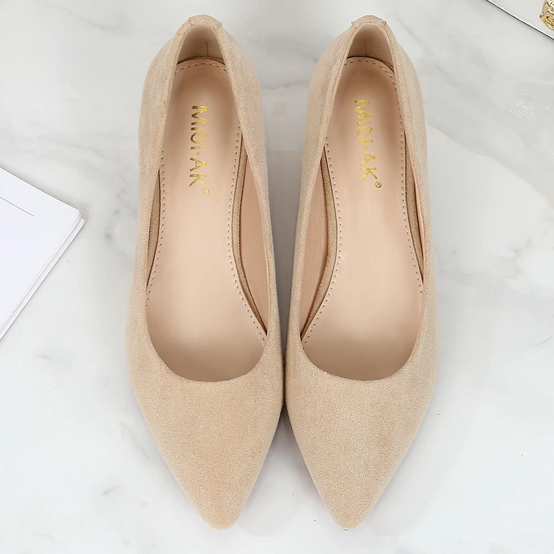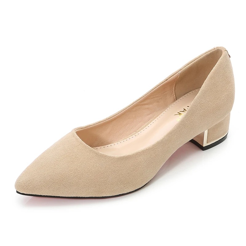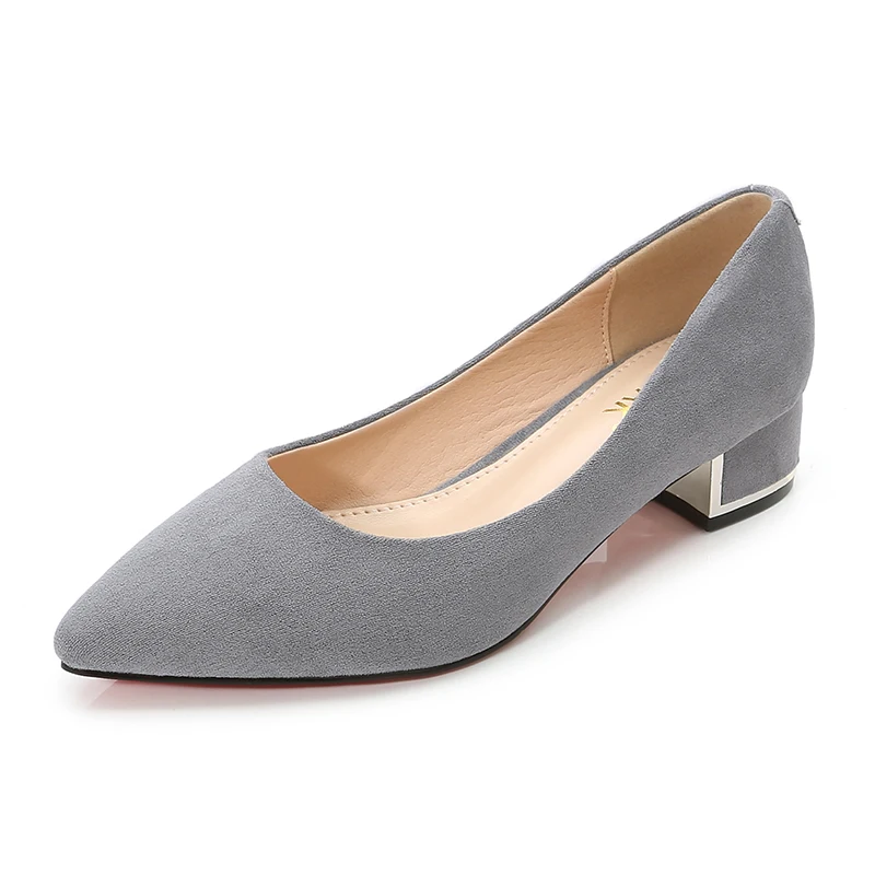 Туфли-лодочки женские с острым носком, простые, из флока, на среднем квадратном каблуке, повседневные, для работы и офиса, E0001