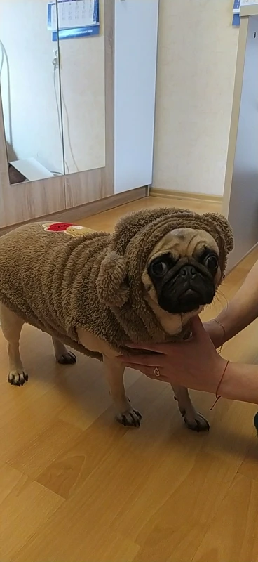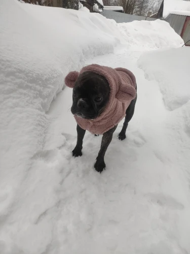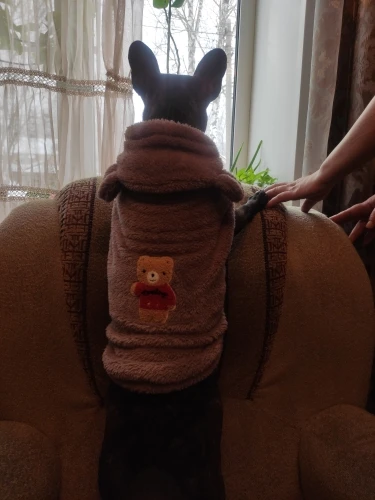 Хорошая одежка. Кнопки пластик, крепкие. Сама кофта плюшевая и мягкая, материал синтетика, сильно тянется, можно было и на размер меньше по таблице. Для французского бульдога 11кг хорошо, объем груди 52-53 см, длина по спинке 35-37 см (для нас немного длинная по спинке, я подшила) Рекомендую на осень - весну.