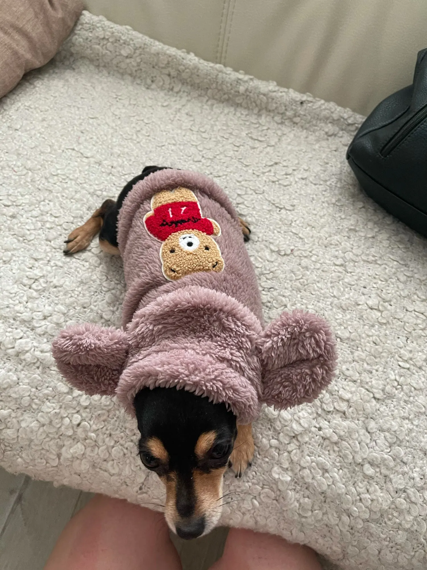Я люблю свитер с плюшевым мишкой, он мягкий и идеально сидит и не забывает, насколько он восхитительный! Я очень доволен этой покупкой. Я определенно рекомендую! Я не могу найти свою фотографию, но поверьте мне, это абсолютно восхитительно на моем черном и коричневом чихуахуа