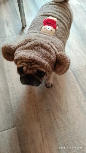 Курточка хорошего качества. Соответствует описанию. Размер XXL подошёл мопсу 10кг.Можно было бы размер брать побольше.