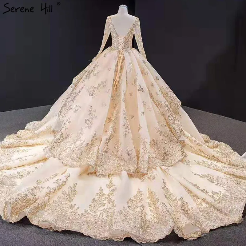 Дубай поздние золотые свадебные платья с короткими рукавами 2021 Ро...