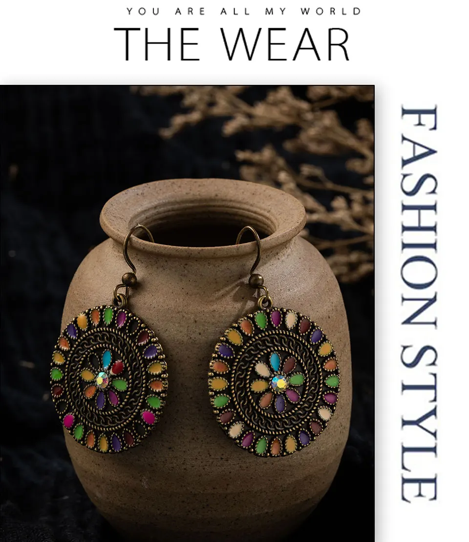 Богемные Ретро Винтажные этнические французские крючки яркие красочные серьги-гвоздики круглые серьги с подвесками для женщин аксессуары вечерние подарки Материал: медного сплава Размер: как на картинке Вес: около 0,01 кг