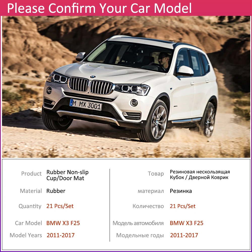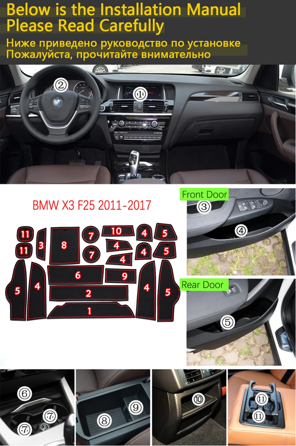 Противоскользящий резиновый коврик для дверных чашек для BMW X3 F25 2011 2017, аксессуары, автомобильные наклейки, коврик для телефона 2012 2013 2014 2016