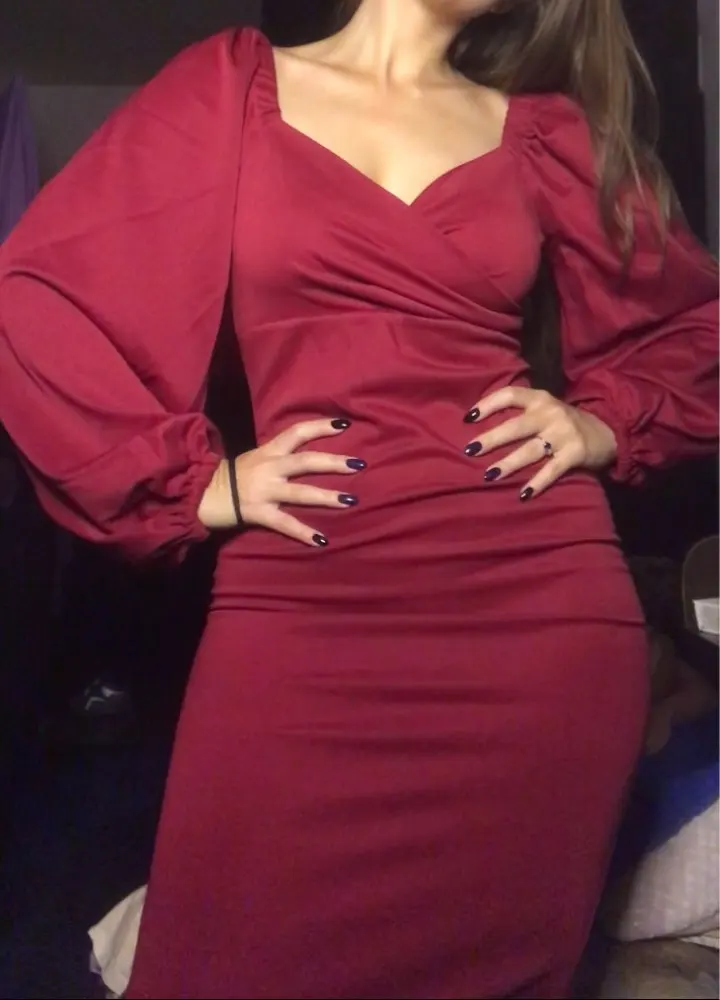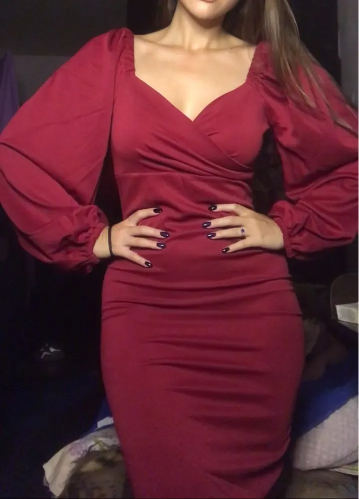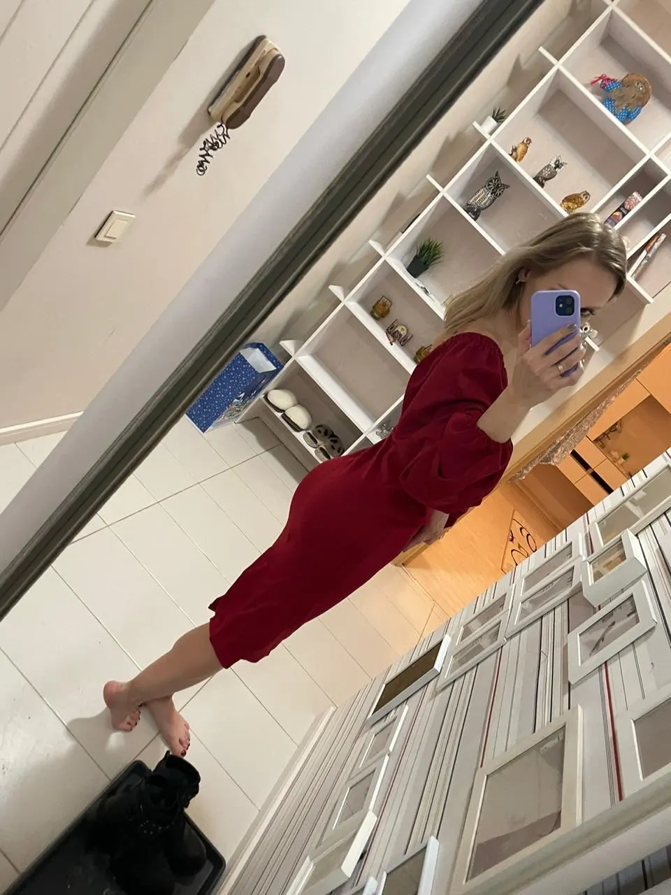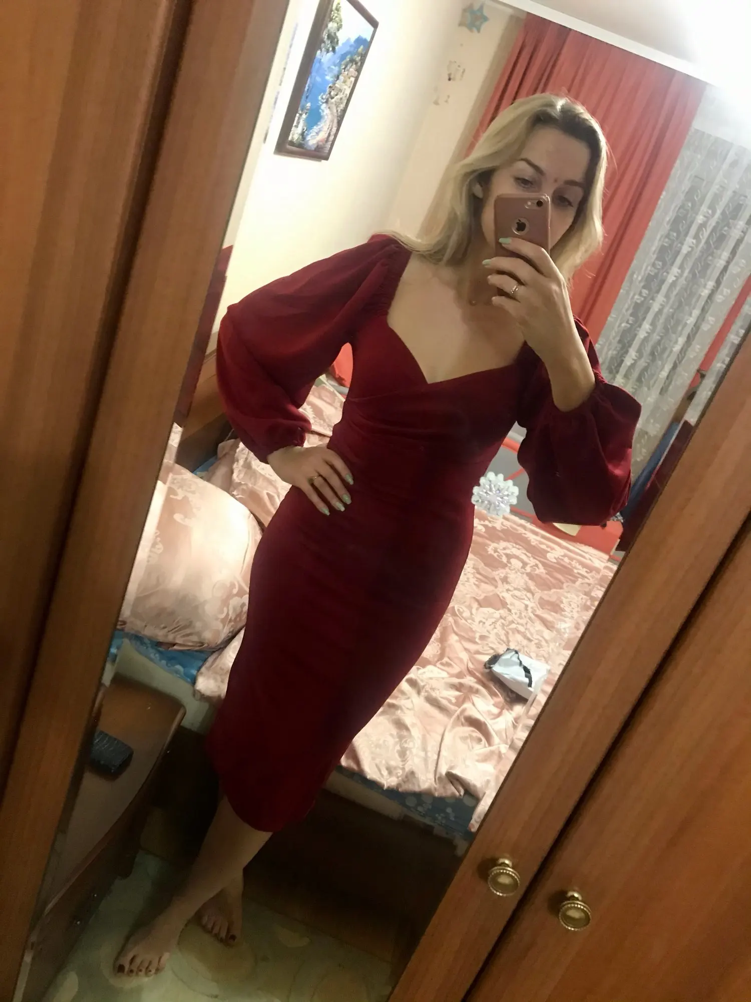 Заказала 11.11, товар пришёл быстро 8 декабря. Доставка быстрая, рекомендую!!! Платье синтетика, но приятная, скользящая на ощупь. РАЗМЕР подошёл отлично. ОГ 86,ОТ 74,ОБ 96,брала L. Лучше пусть будет слегка свободнее, чем с заломами и складками. Цвет вино-красный. РУКАВА ФОНАРИКАМИ. НА МОИХ плечах держится, но ни достаточно хорошо. Под такой фасон надо чулки и нижнее белье безшовное, незаметно, а иначе все изъяны видно сразу.