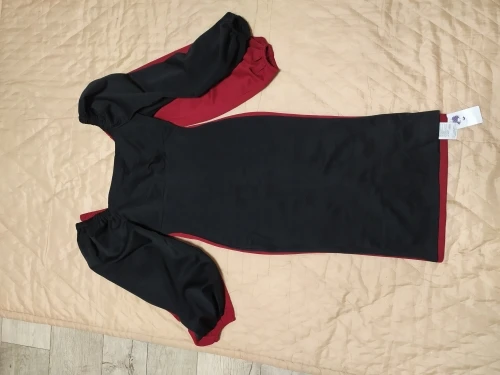доставка быстрая,сшито качественно,но есть и но...брала подруге такое бордовое и так вот,фасон у черного и бардо одинаковый,а вот ткань разная.На мои параметры 95-72-99 бардо свободно,а черное внадрай!Еле влезла.У черного платья ткань не такая эластичная.На первом фото видно насколько эластичнее бордовое,дэ и сложив вместе видно,что черное меньше.
