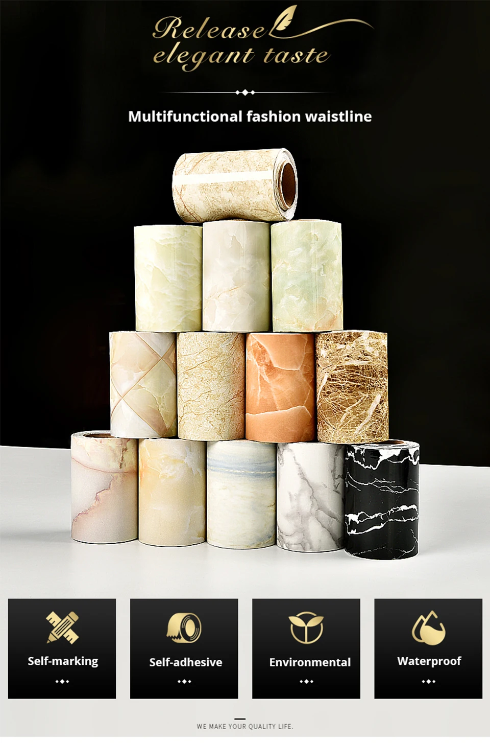 Мраморные линии талии обои для ванной самоклеящиеся Плинтус Линии водонепроницаемые декоративные коридор пол границы наклейки