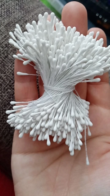 Красивые тычинки, цвет молочный. Сделаны качественно, брака почти нет (четыре тычинки, склеенные друг с другом по две, не считаются)))), описанию соответствуют. Ехали правда долго, до МО почти 2 месяца, но приехали, уже отлично! Продавцу спасибо за качественный товар.