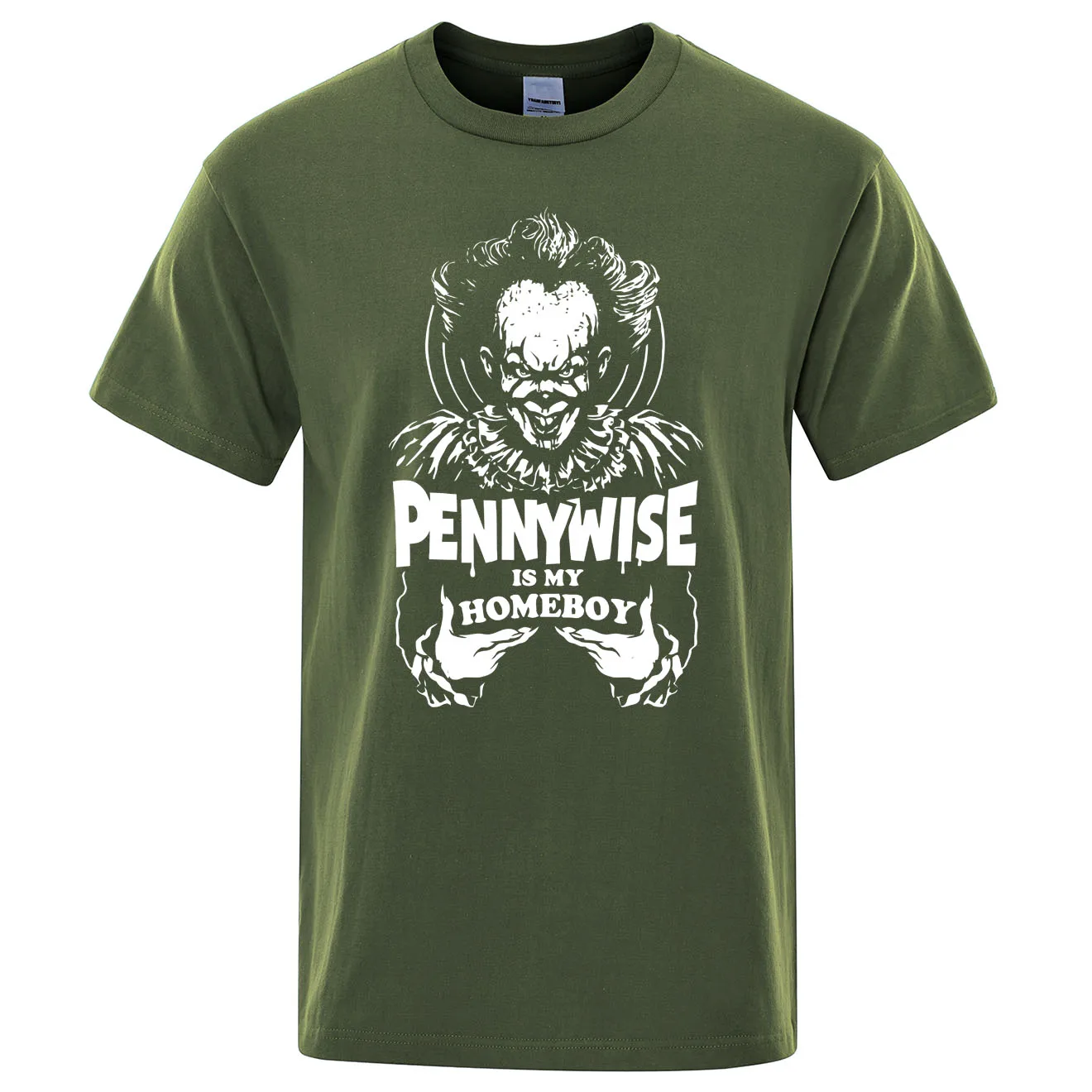 2022 летняя 100% Хлопковая мужская футболка с круглым вырезом и коротким рукавом топы клоуна-это мой дом для мальчиков Pennywise It Хэллоуин ужас унисекс футболка
