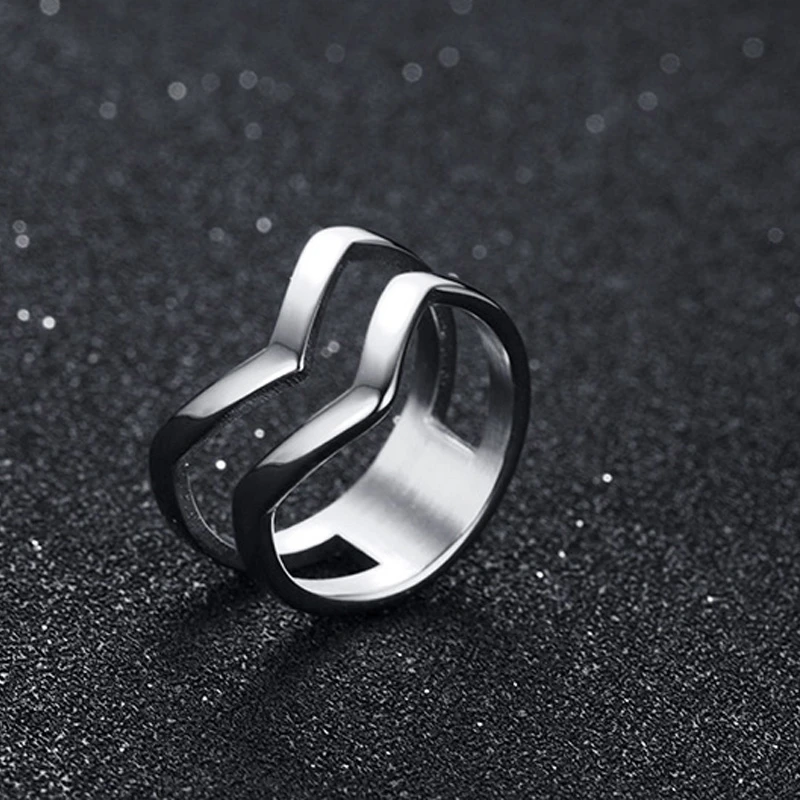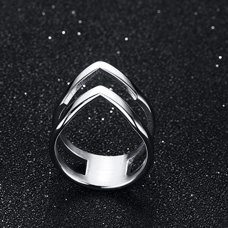 Очаровательные женские вечерние кольца из нержавеющей стали, серебристый оттенок, двойное кольцо в форме шеврона, кольцо на кончик пальца, геометрические подарки