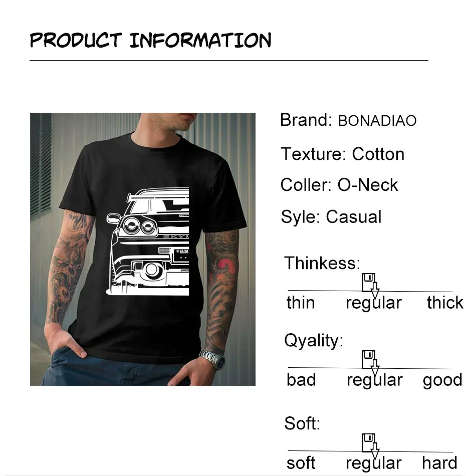 Качественная хлопковая Футболка JDM Skyline R34 GTR с машинкой, уни...