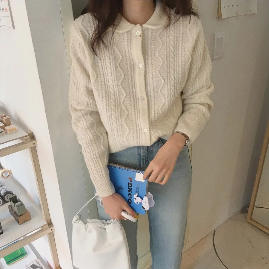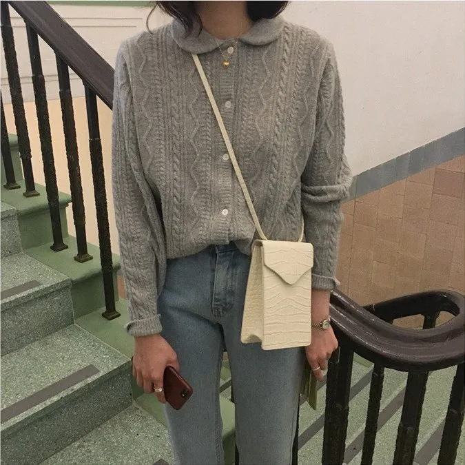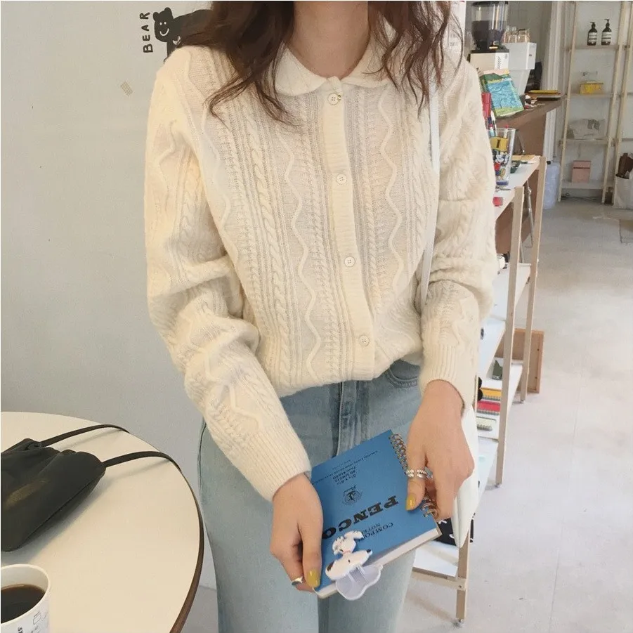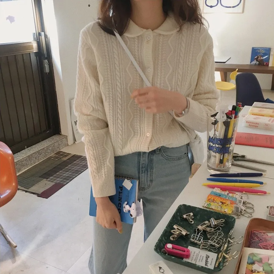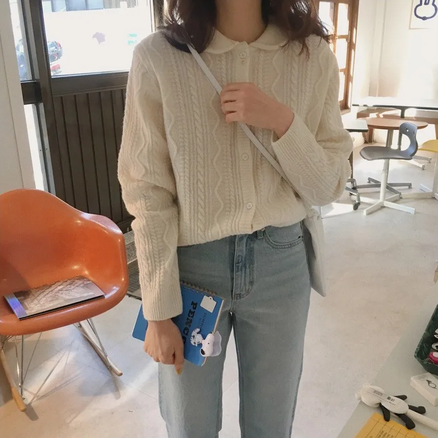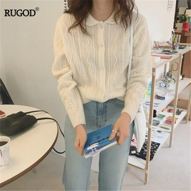 RUGOD 2019 Новый женский Тонкий Конопляный вязаный кардиган милый отложной воротник с длинными рукавами свободный свитер Стильное повседневное пальто