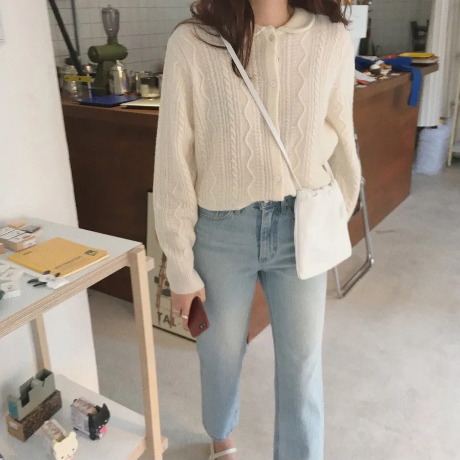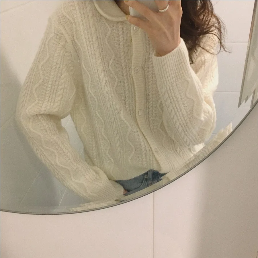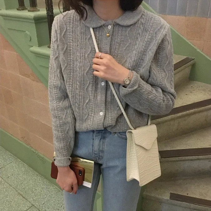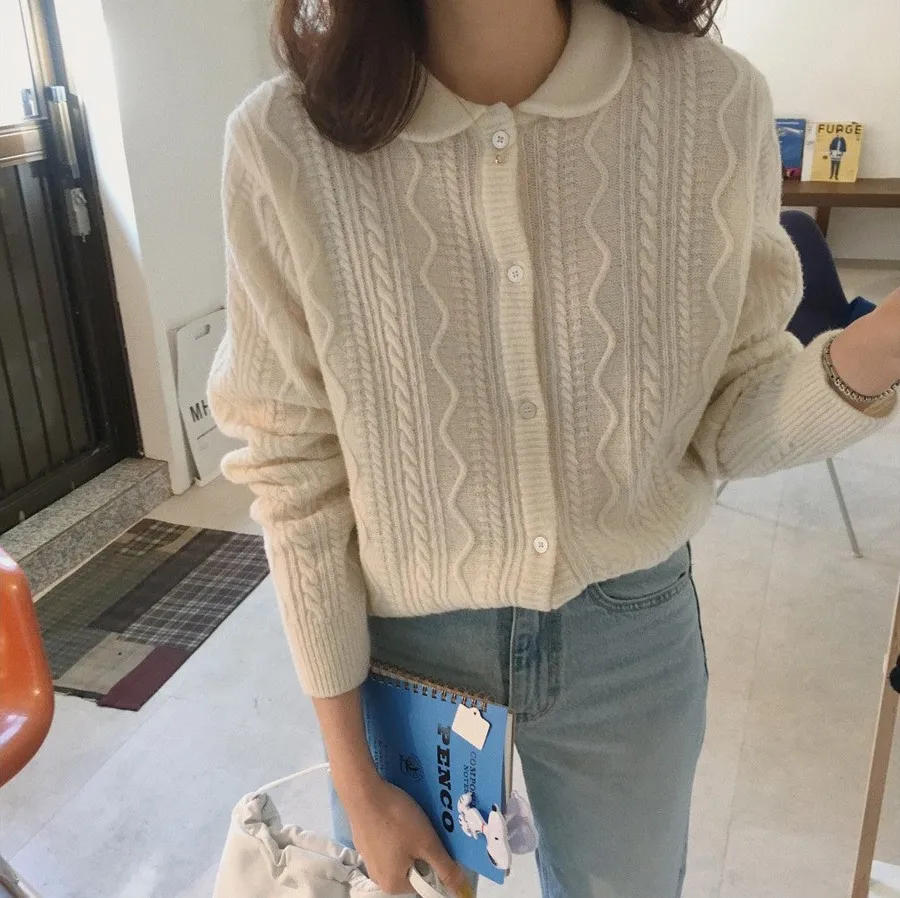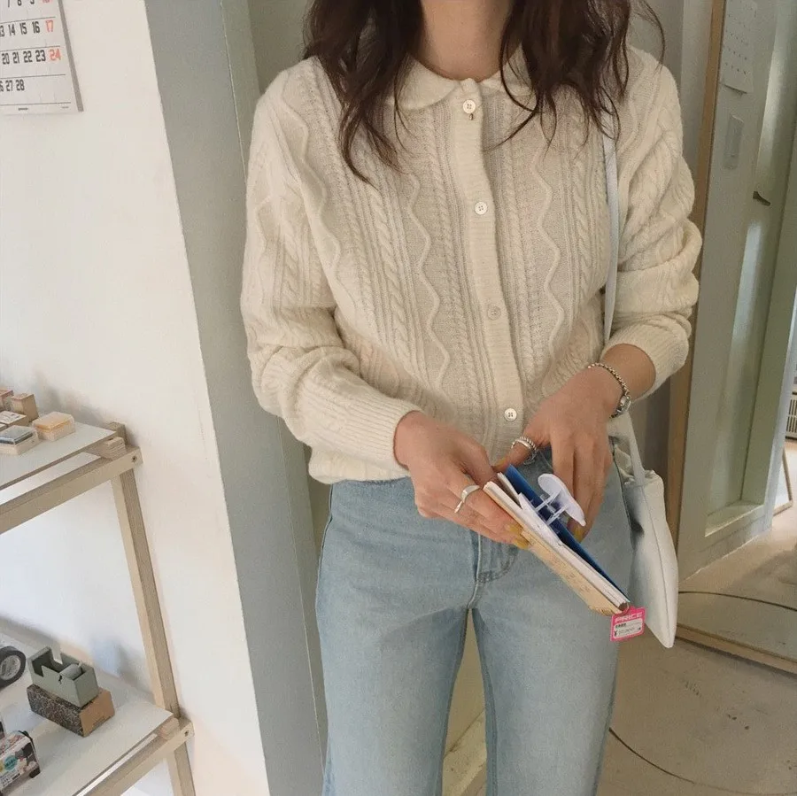 RUGOD 2019 Новый женский Тонкий Конопляный вязаный кардиган милый отложной воротник с длинными рукавами свободный свитер Стильное повседневное пальто