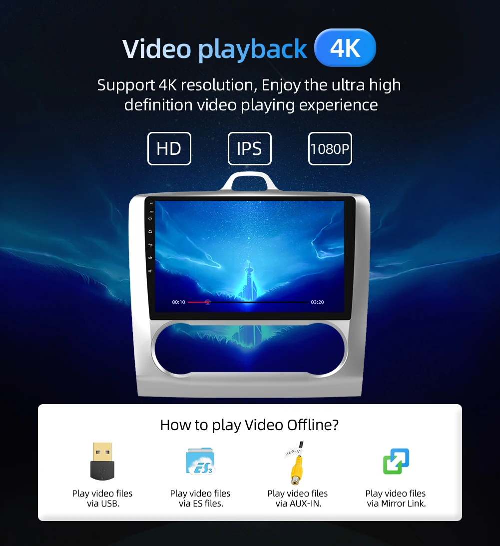 Сенсорный экран + радио + FM/AM + RDS + gps-навигация + карта + Wifi + Bluetooth + управление рулевым колесом + сплит-экран + USB + SD + AUX вход/выход + зеркальная ссылка + задний камера + сабвуфер + Play Sore + EQ + набор обоев + логотип автомобиля + 3G/4G + TPMS + DAB + OBD 2 + DVR + TV