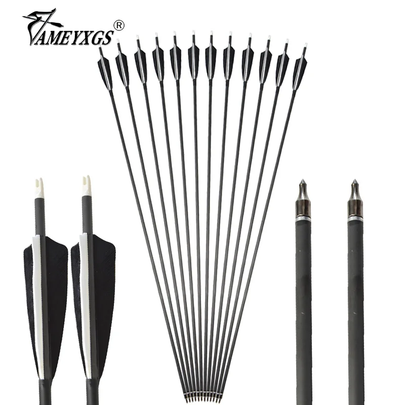 6/12 шт. стрельба из лука 35 дюймов позвоночника 500 Mix углеродную стрелу перо индейки для быстрого соединения изогнутый лук стрельбы принадлежности для охоты