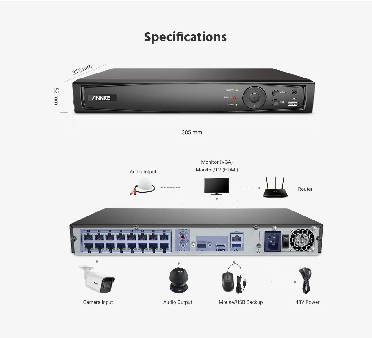 Сетевая система видеонаблюдения ANNKE H800, 8 каналов, 8 Мп, Ultra ...