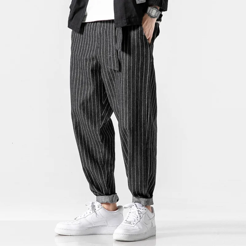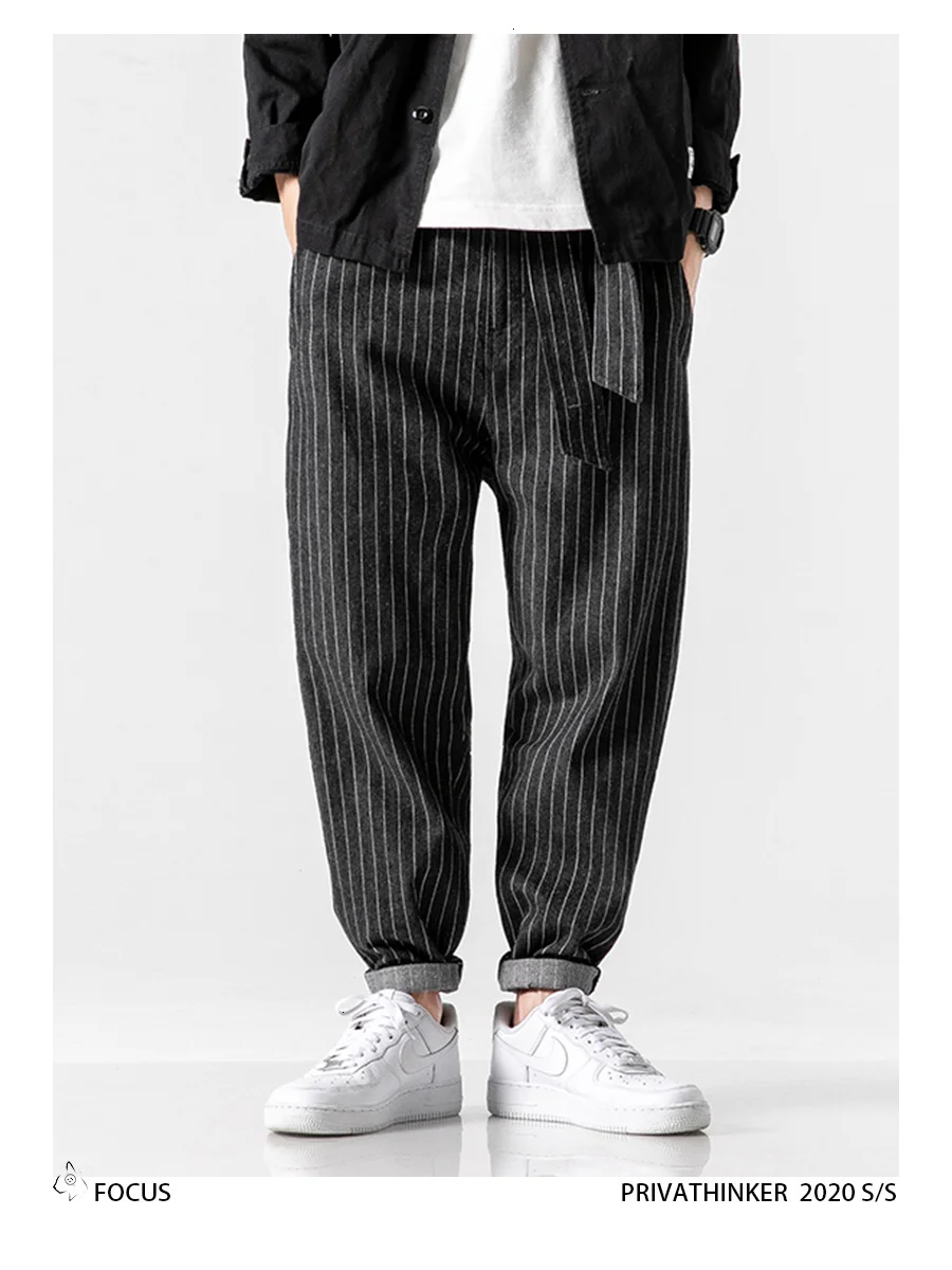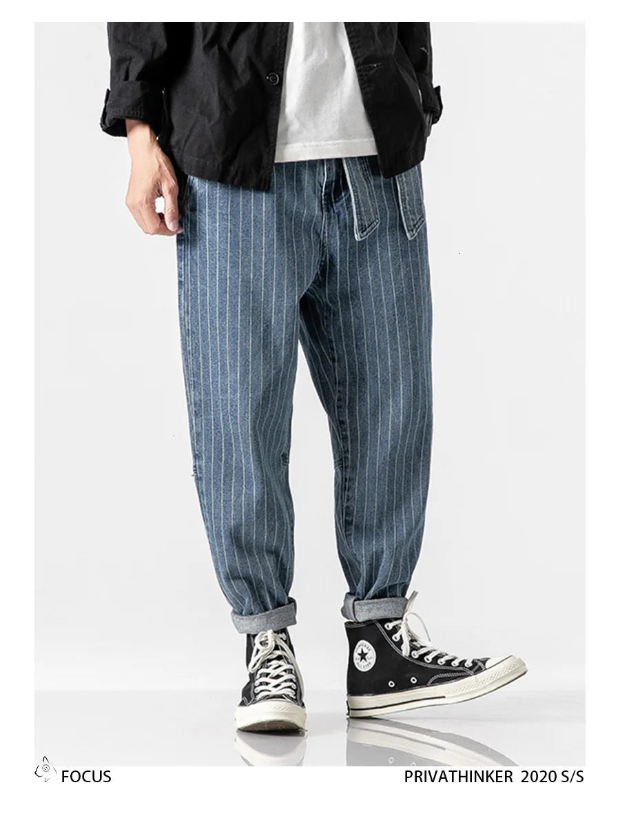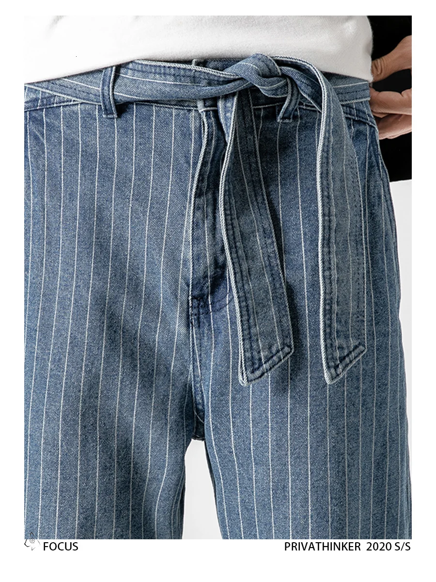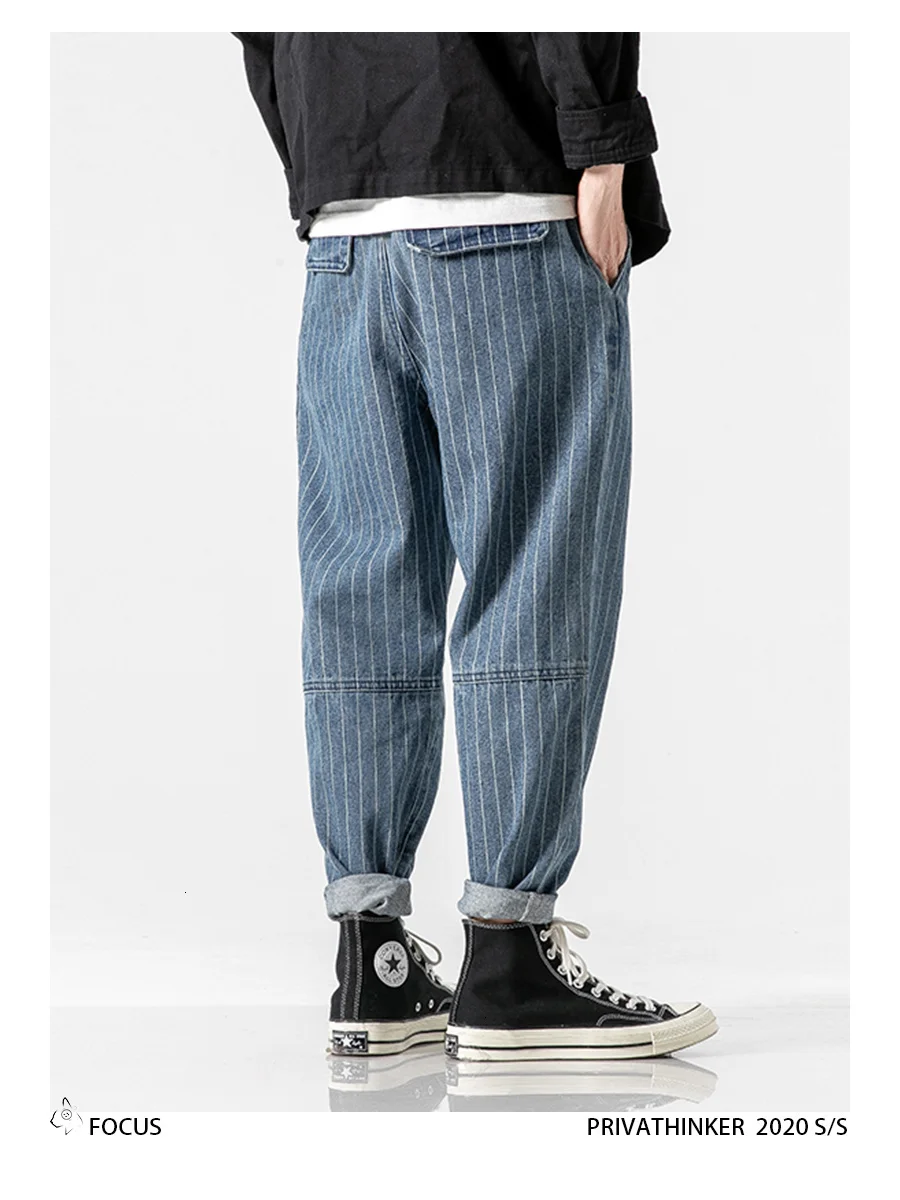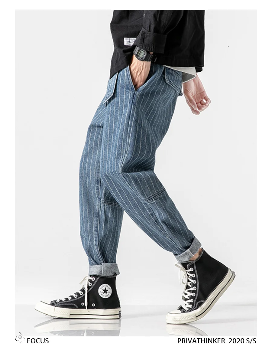 Мужские мешковатые джинсы MrGB 2022, уличная одежда, полосатые мужские джинсовые брюки оверсайз, повседневные весенние брюки-султанки, мужские брюки для бега на шнурке