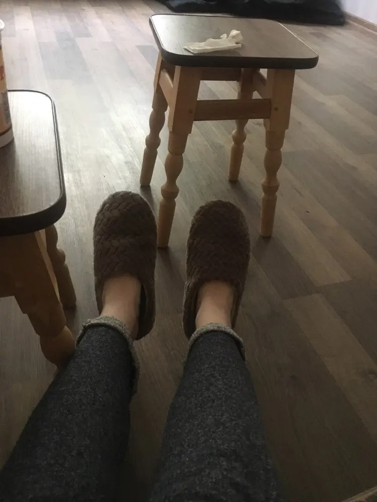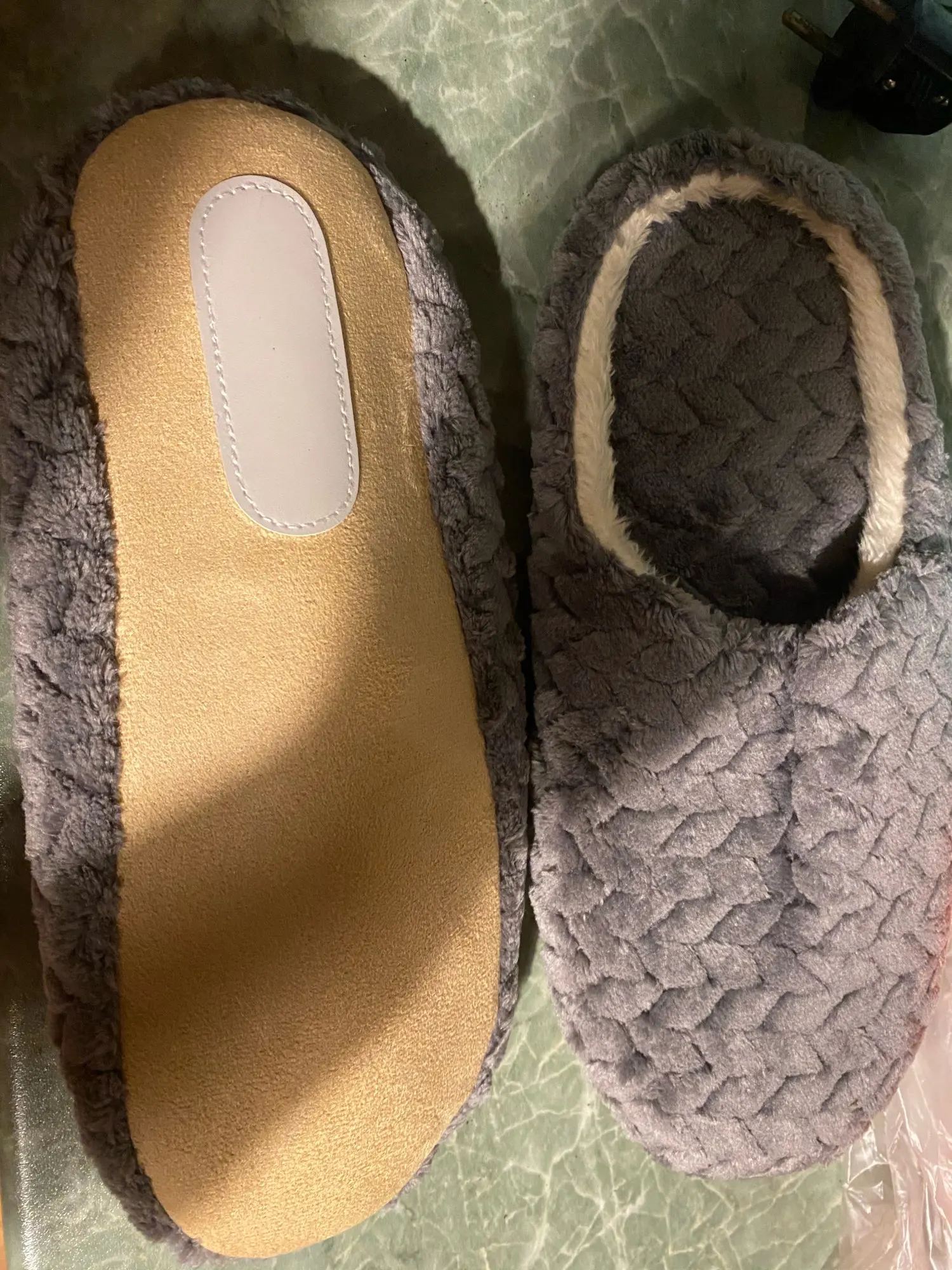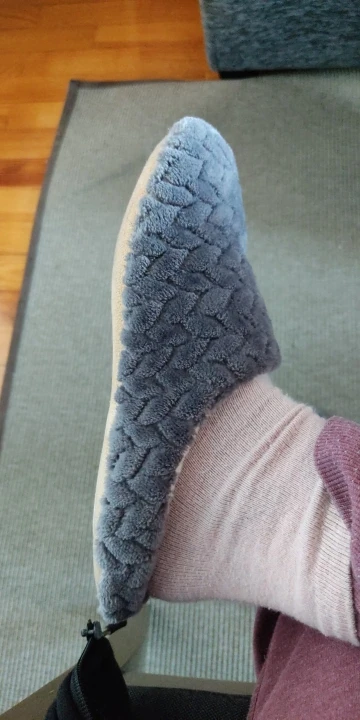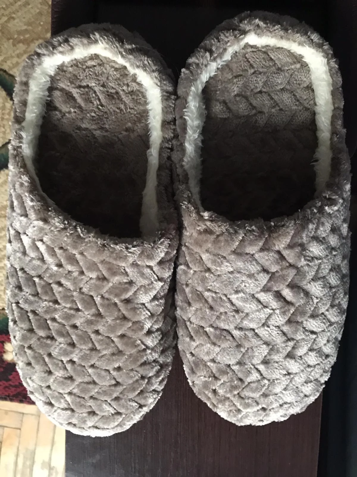 Тапочки очень мягкие. Выглядит так, будто вы идете вверх. Изоляция холода и идеально подходит для зимы. Они не соскальзывают с ног, и самое главное-не сломать паркет, и вы не можете слышать, как вы ходите по дому. Очень полезно для них.