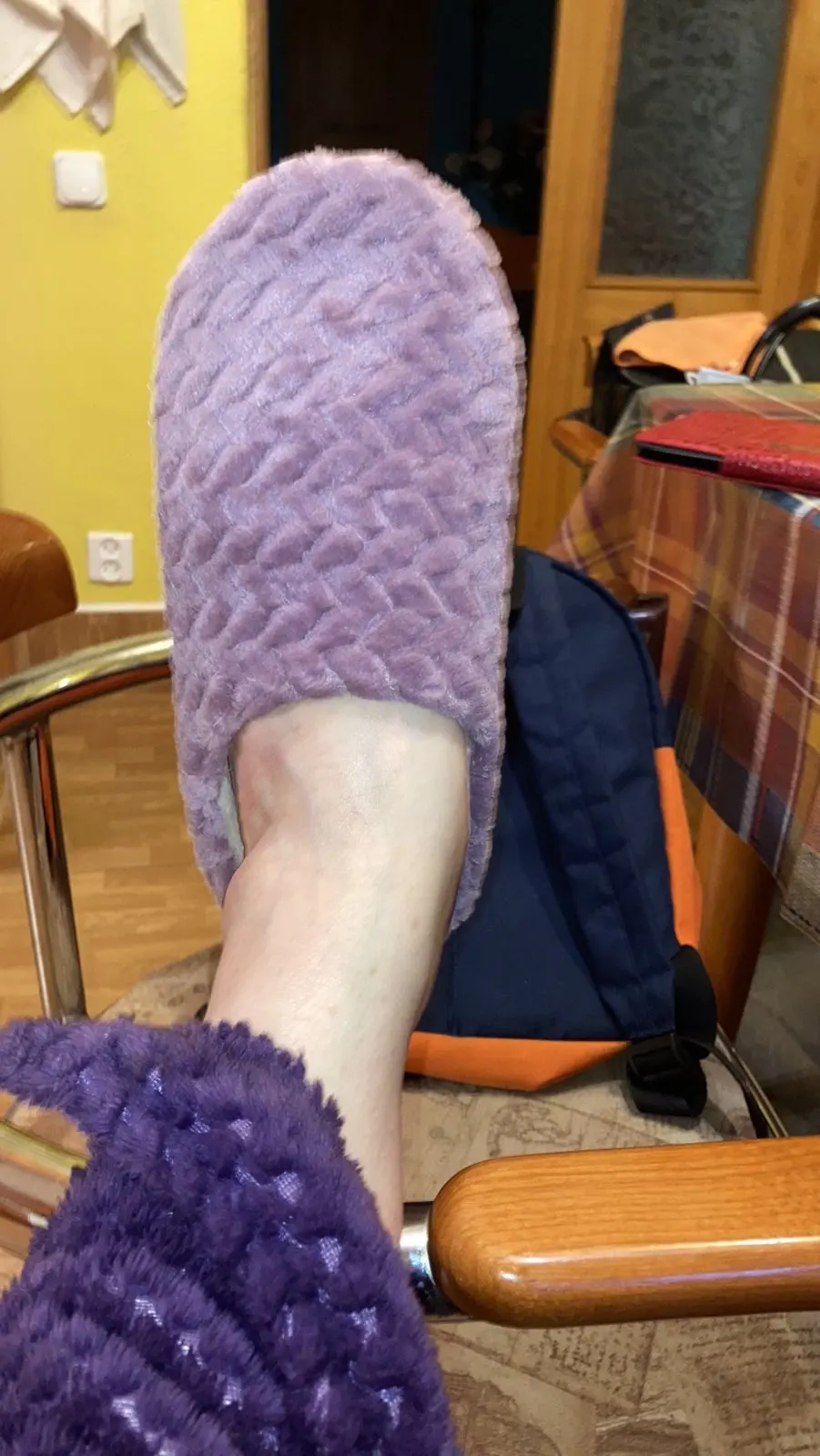 Тапочки великолепные. Мягкие. Пятку не давит. Брала самый маленький размер по таблице он примерно на 36 размер рекомендую
