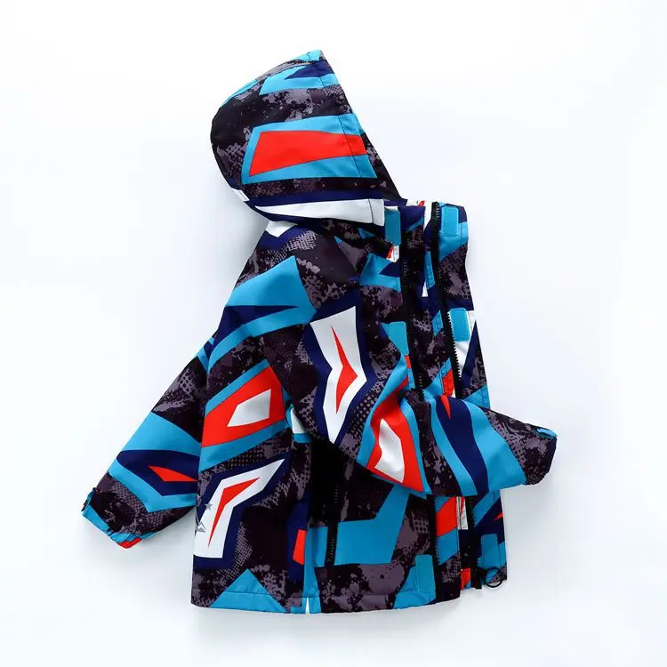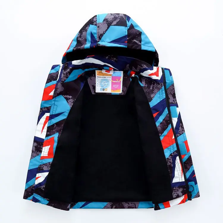 Спортивная детская одежда с геометрическим принтом, теплая флисовая Детская куртка, водонепроницаемая куртка для маленьких девочек и мальчиков, Детская верхняя одежда для 98-152 см