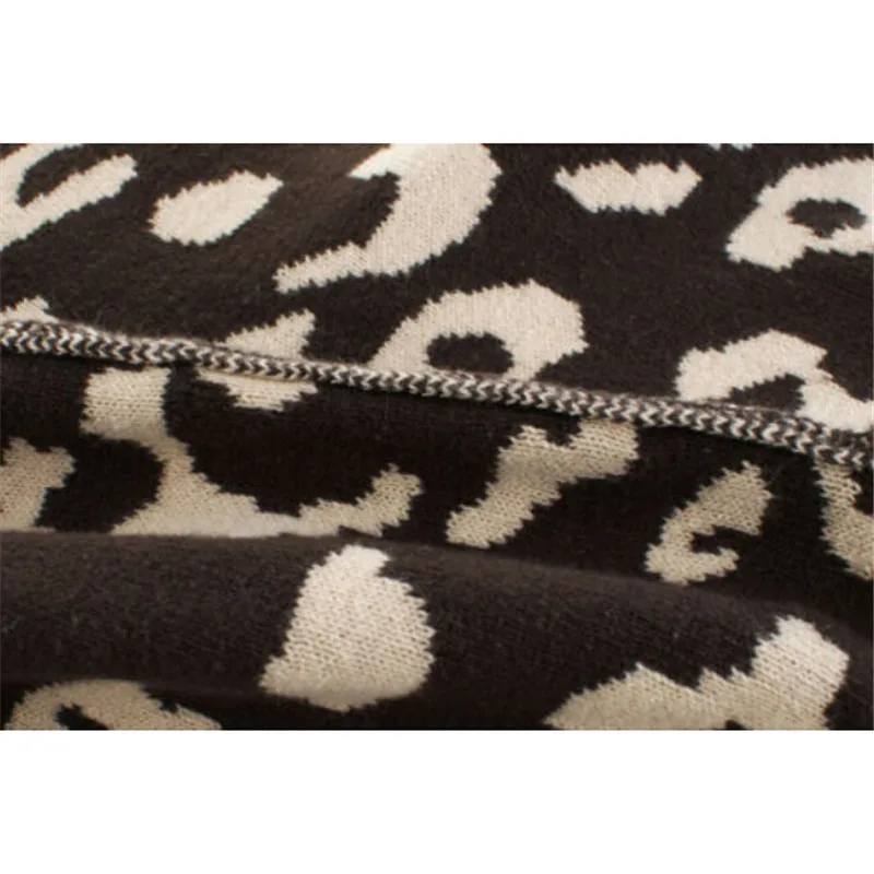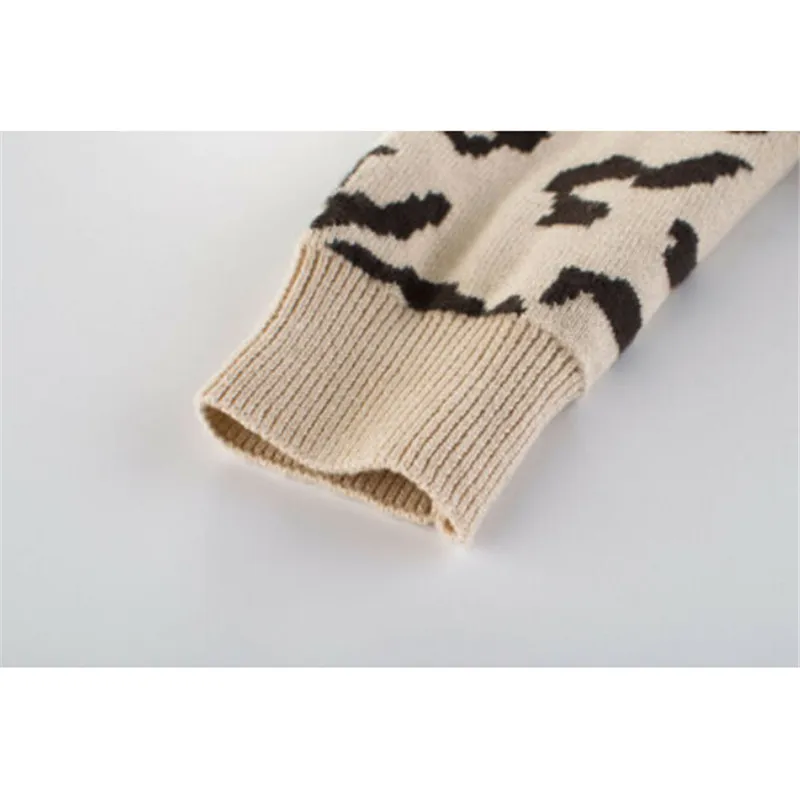 Женский осенне-зимний теплый свитер с леопардовым принтом и длинным рукавом