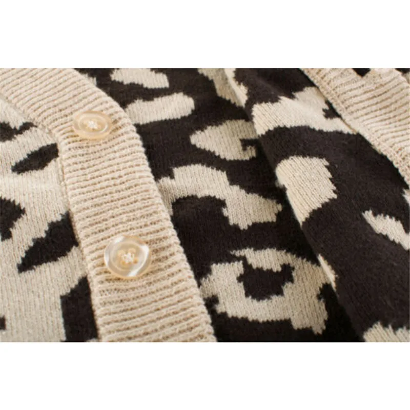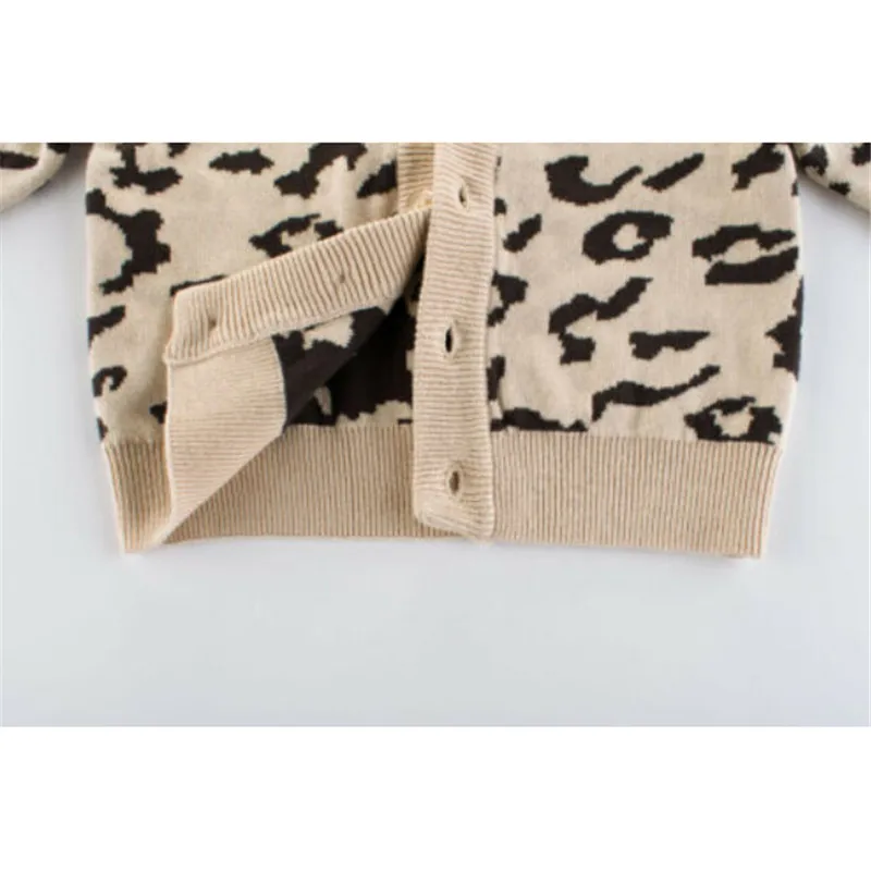 От 1 до 7 лет теплые свитера для маленьких девочек; Сезон осень-зима; Пальто с леопардовым принтом; Однобортная Повседневная куртка с длинными рукавами и v-образным вырезом; Детская одежда!